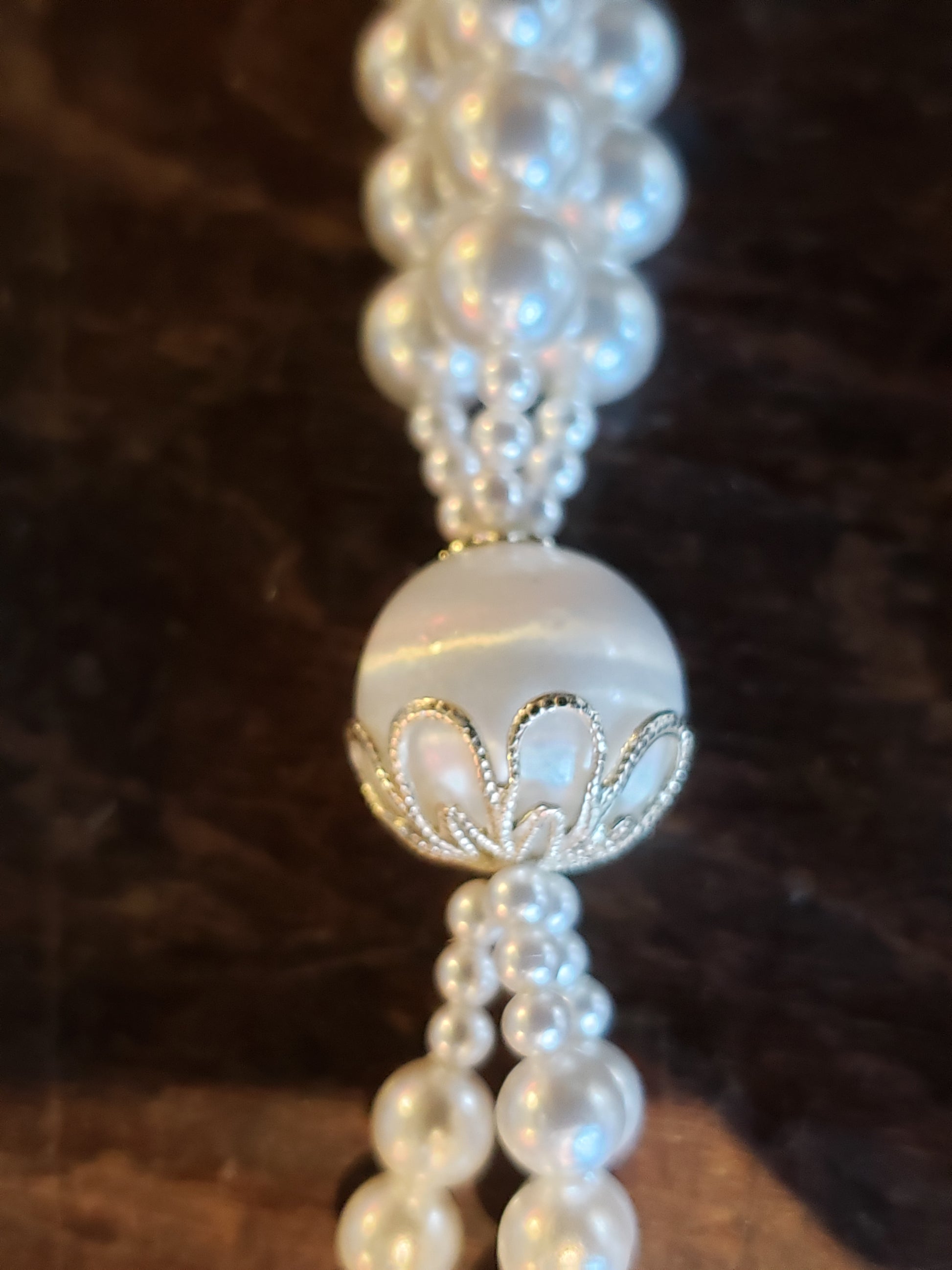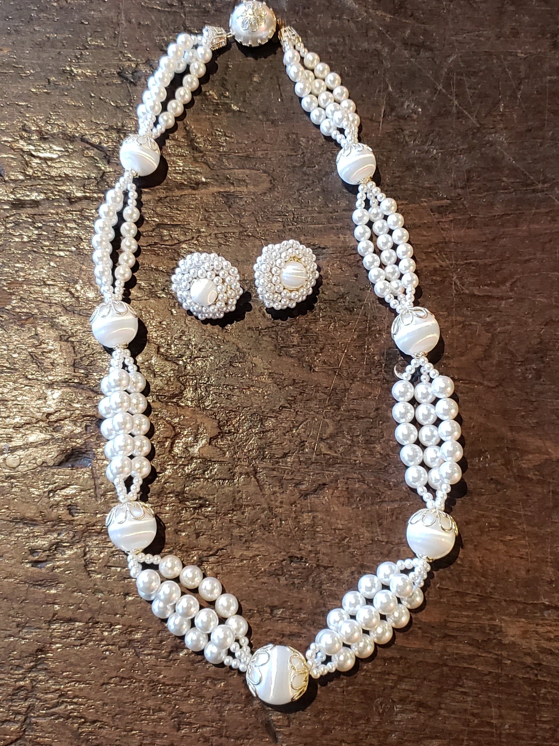 Elevate your bridal look with this stunning vintage white beaded necklace and clip earrings set. The 22-inch necklace features a cleverly concealed clasp inside a decorative bead, ensuring a seamless and elegant finish. Perfect for adding timeless charm and sophistication to your special day. Would also be lovely for prom or any formal gathering. Fair vintage condition.