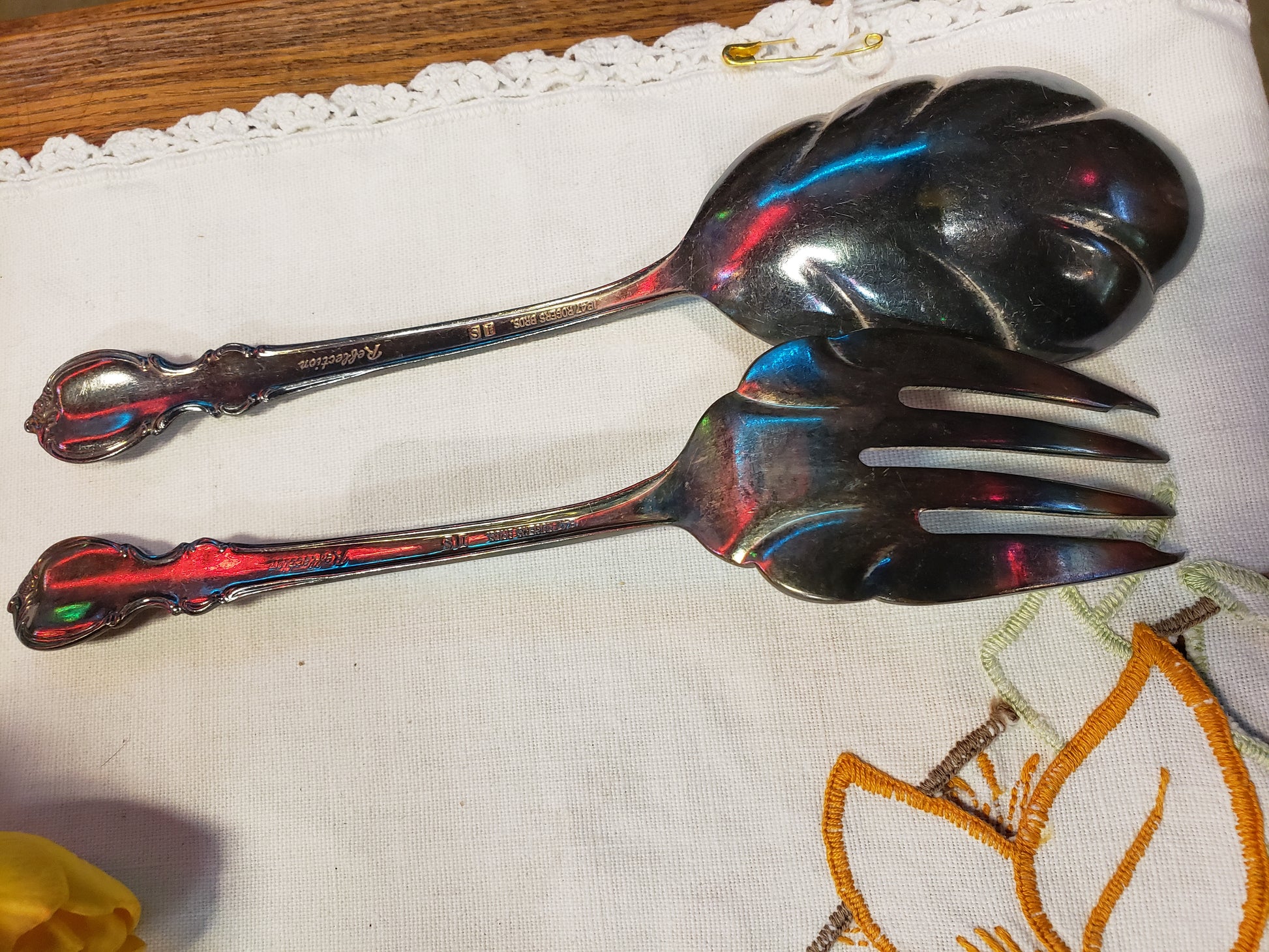 Pair of Vintage Serving Utensils by the Rogers Brothers, the pattern is Reflections and it is embossed "1847 Rogers Brothers Reflections" on the back of both utensils. RED TAG SALE!