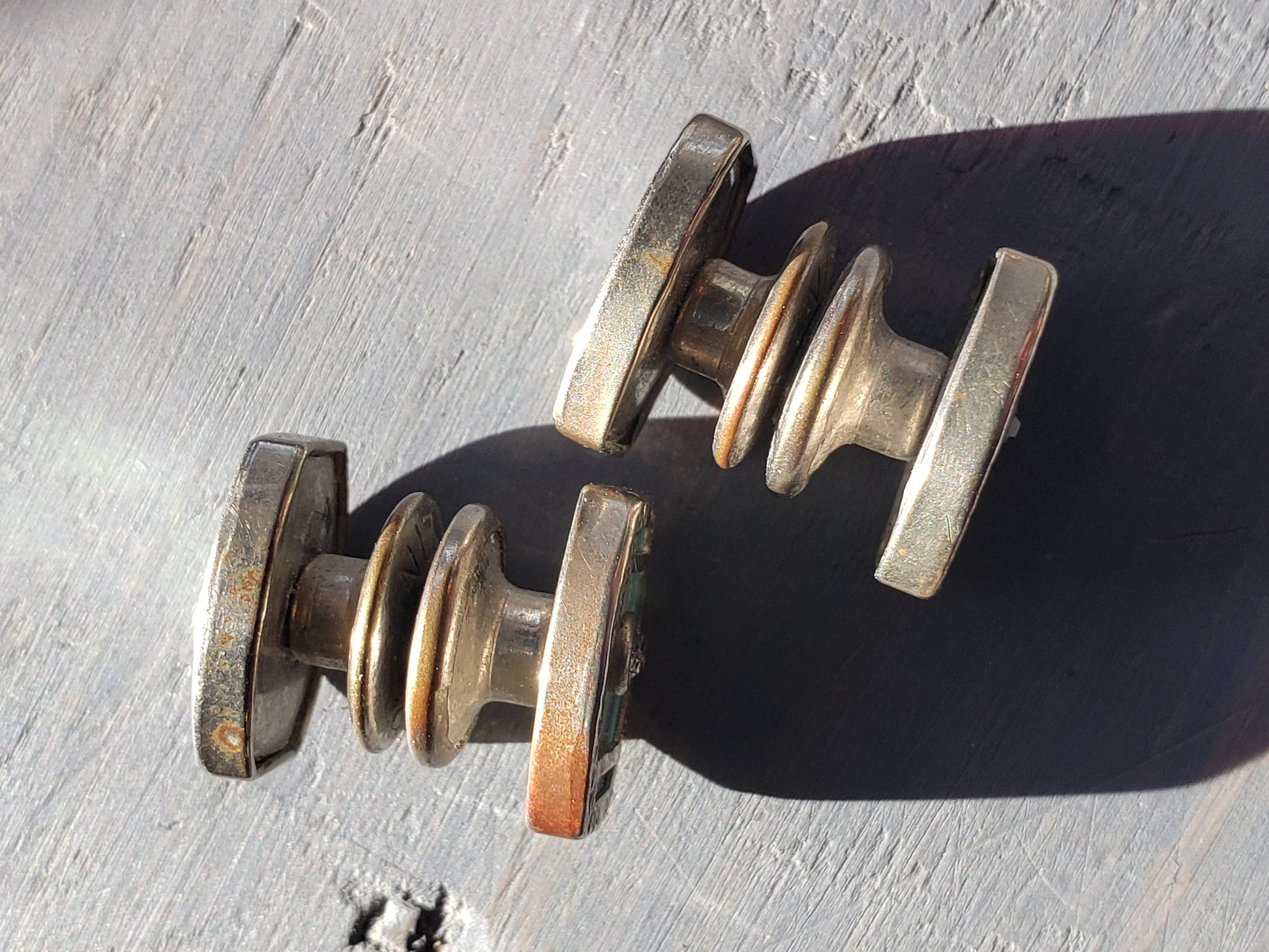 1920s mother of pearl & silver snap cuff links