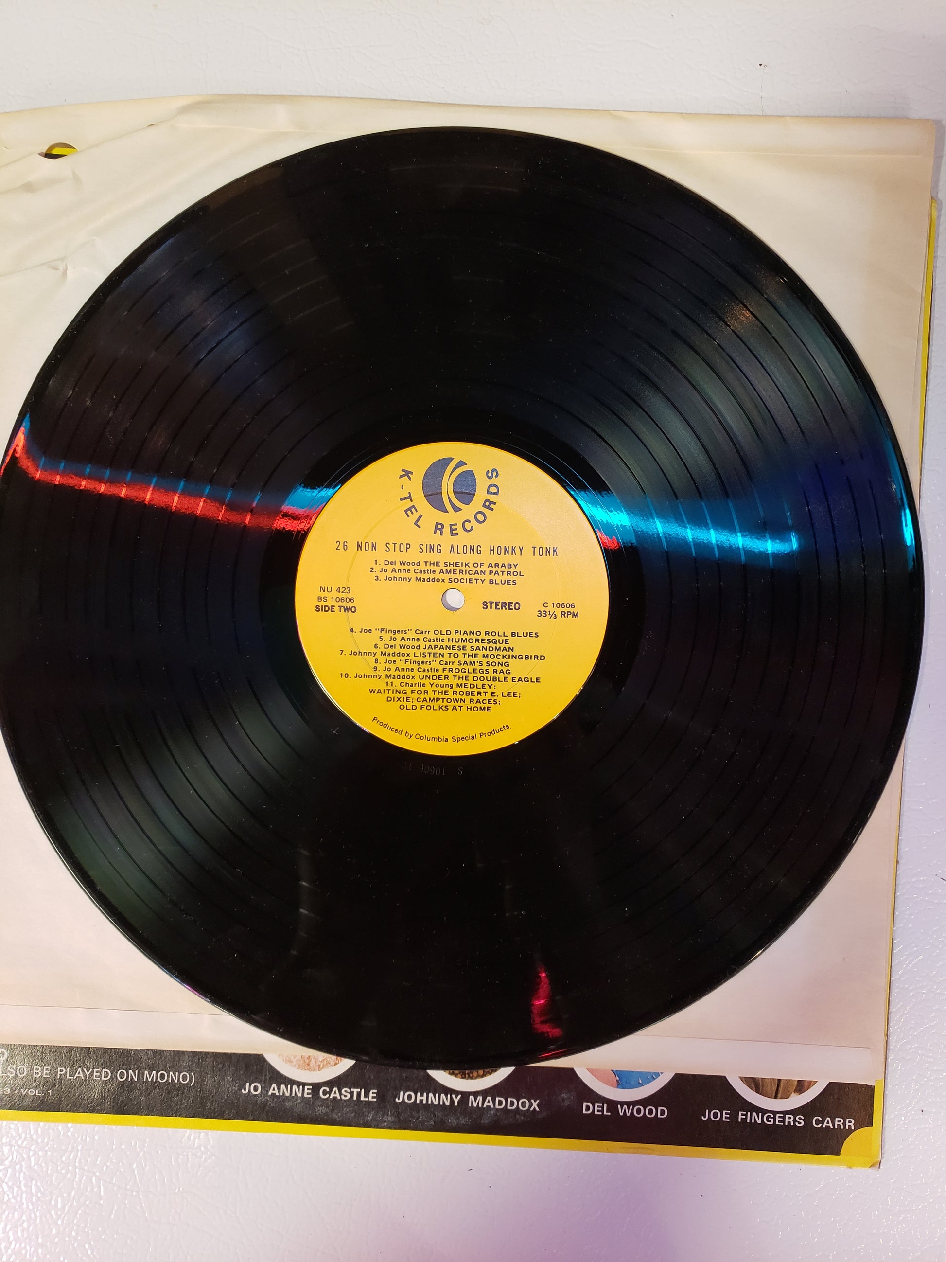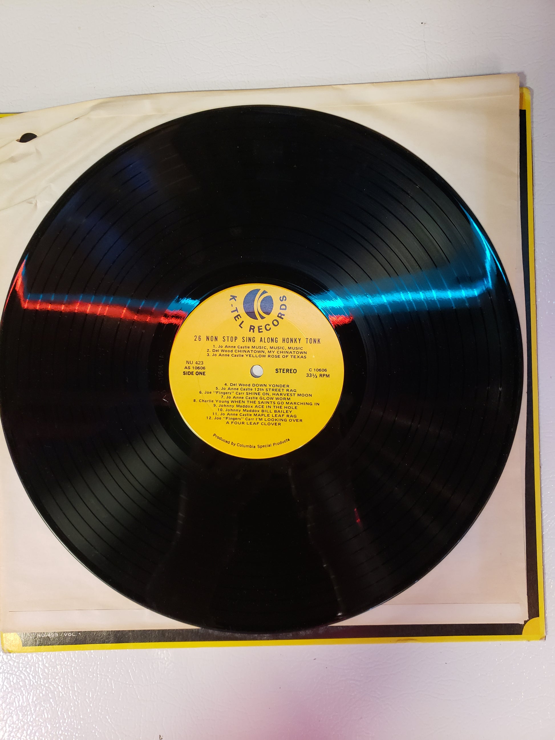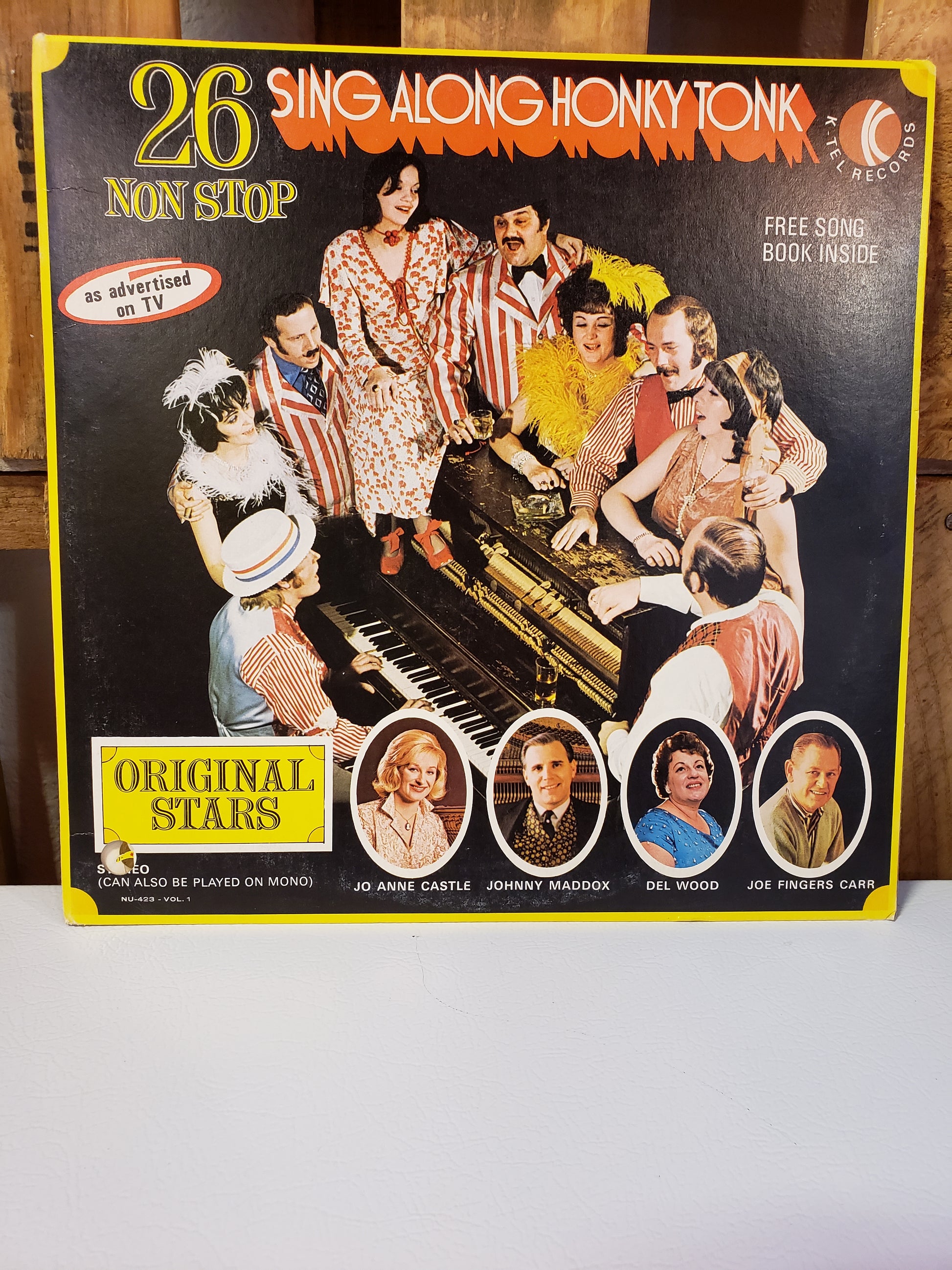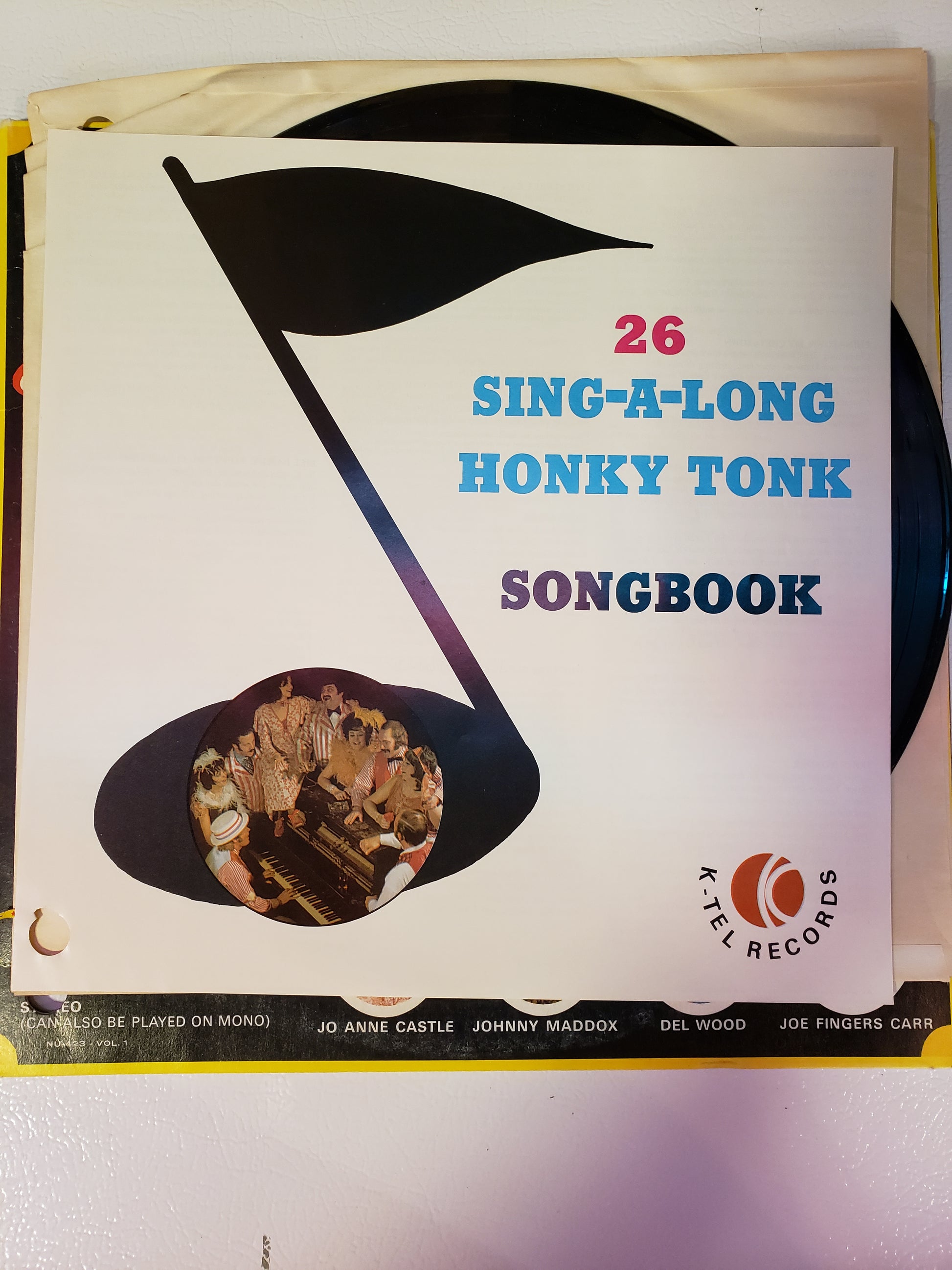 A compilation of 26 Honky Tonk songs by K-Tel with a convenient song book to sing along. Fair vintage condition