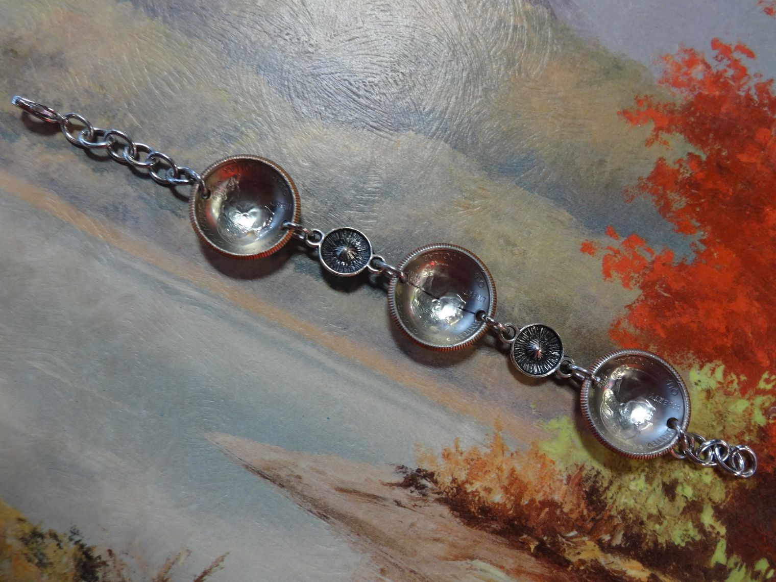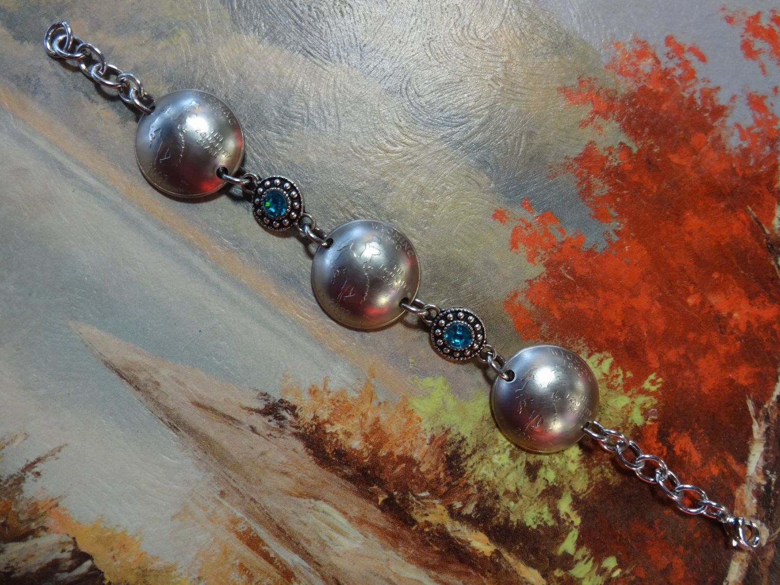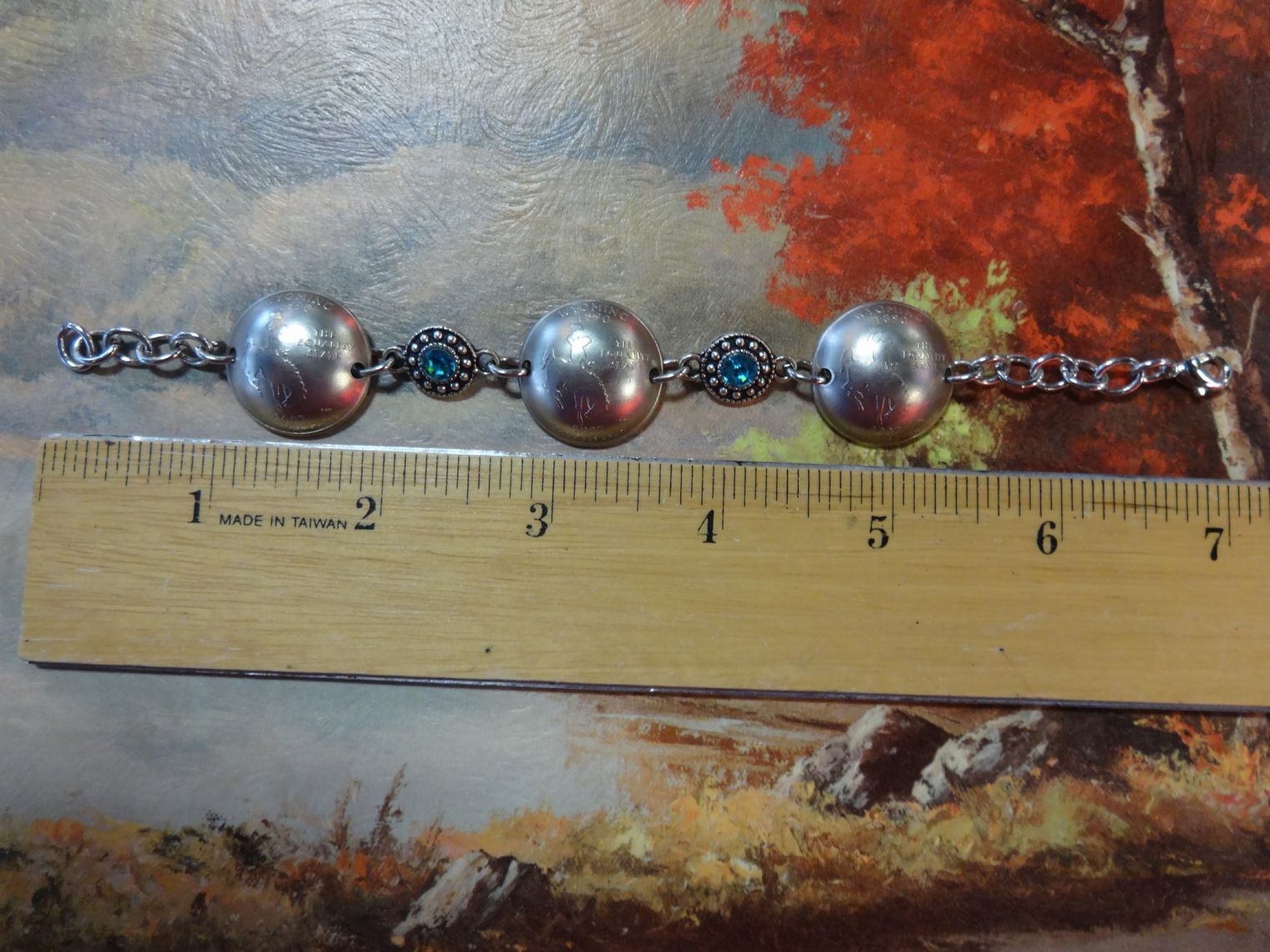 Bracelet with 3 Wyoming Quarters and two light blue and silvertone beads