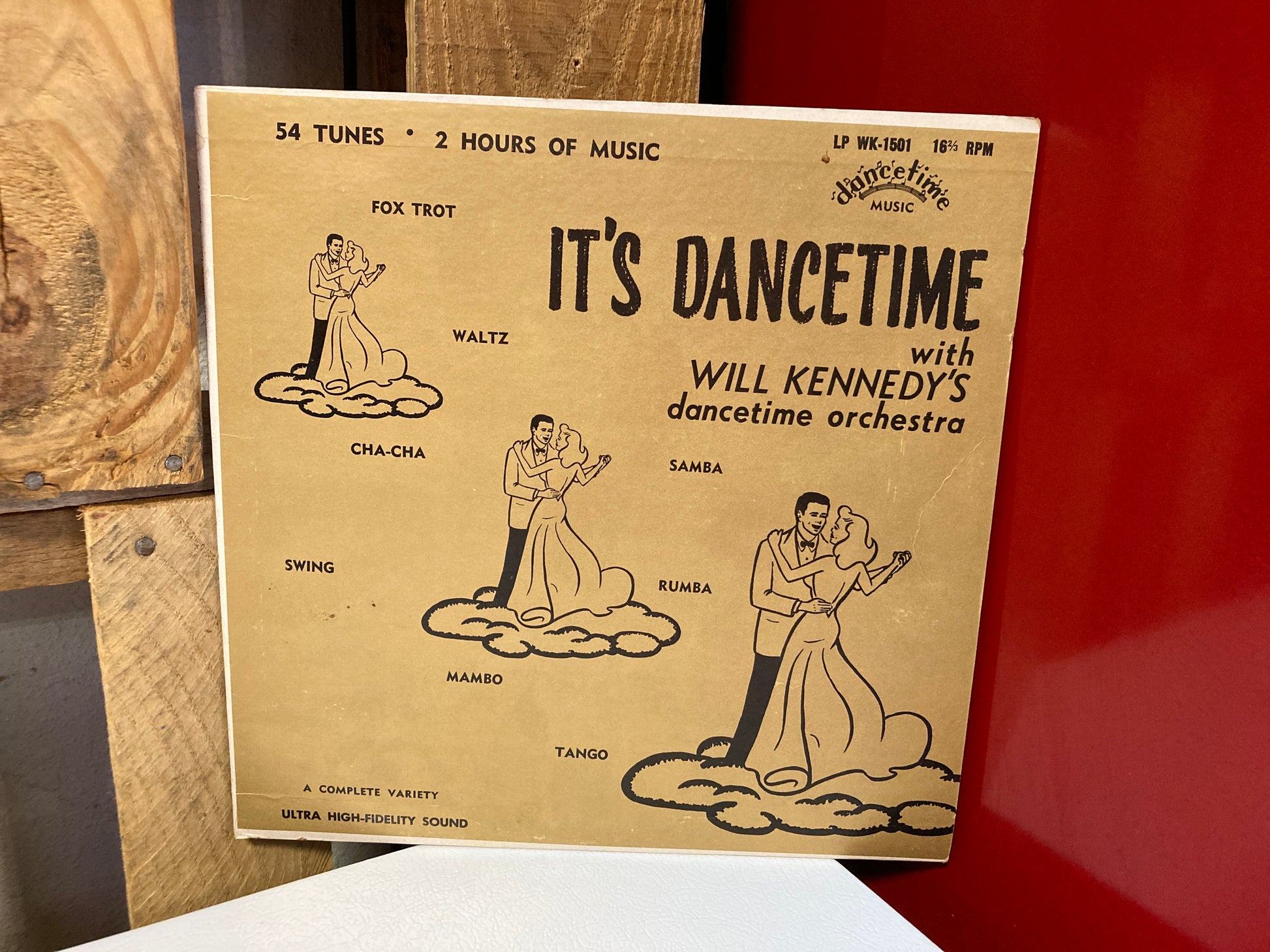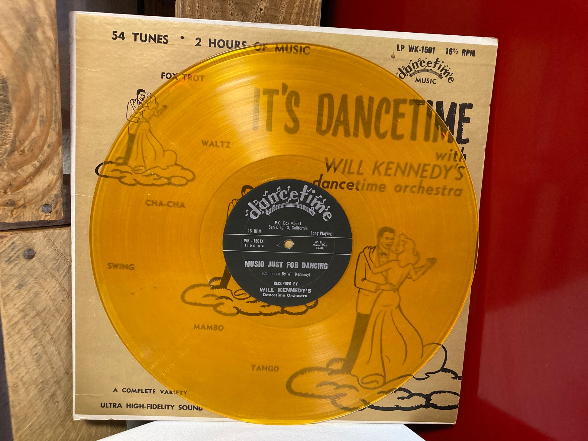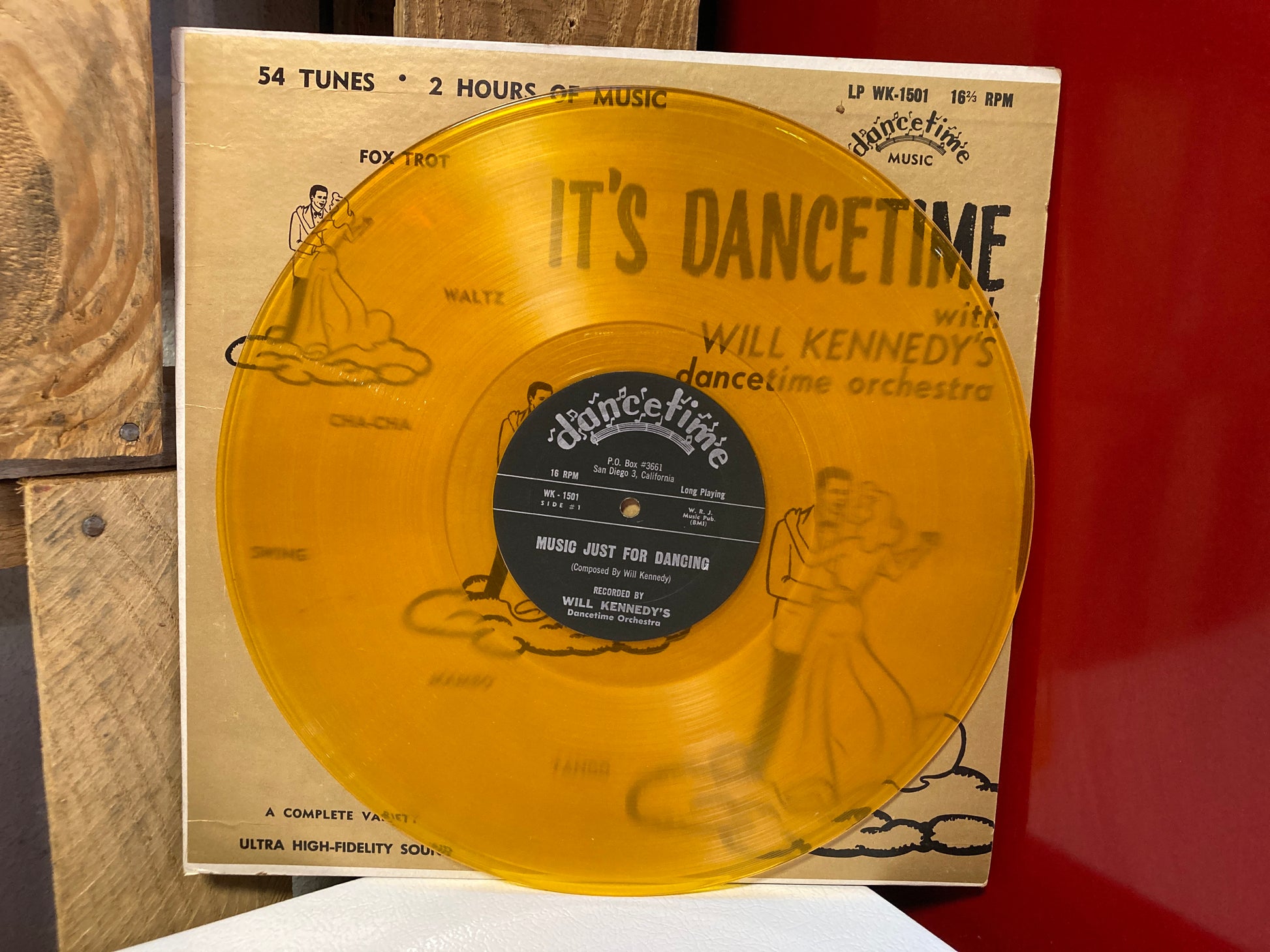 Dance time, Music Just for Dancing. Ballroom Dance music, 54 songs. 16 2/3 rpm on a clear yellow record with very light scuffs. This will NOT play on a regular record player. record vinyl. In fair used condition.