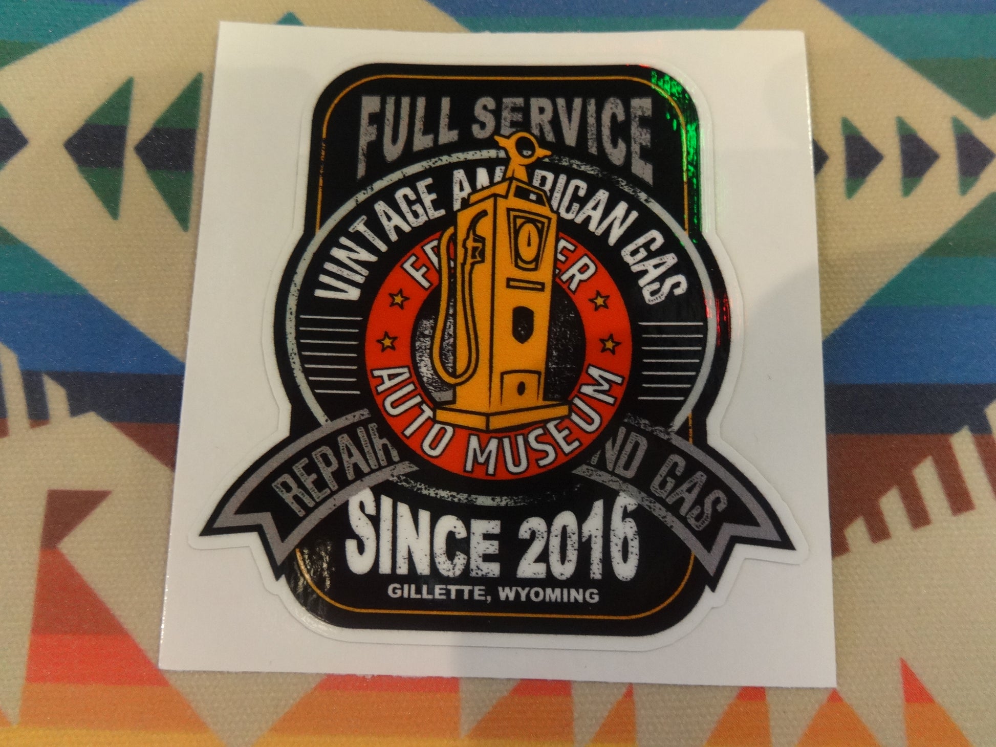 Full Service Vintage American Gas Since 2016 Decal / Sticker from Frontier Auto Museum in Gillette, Wyoming. 2.5 x 2.5 inches.