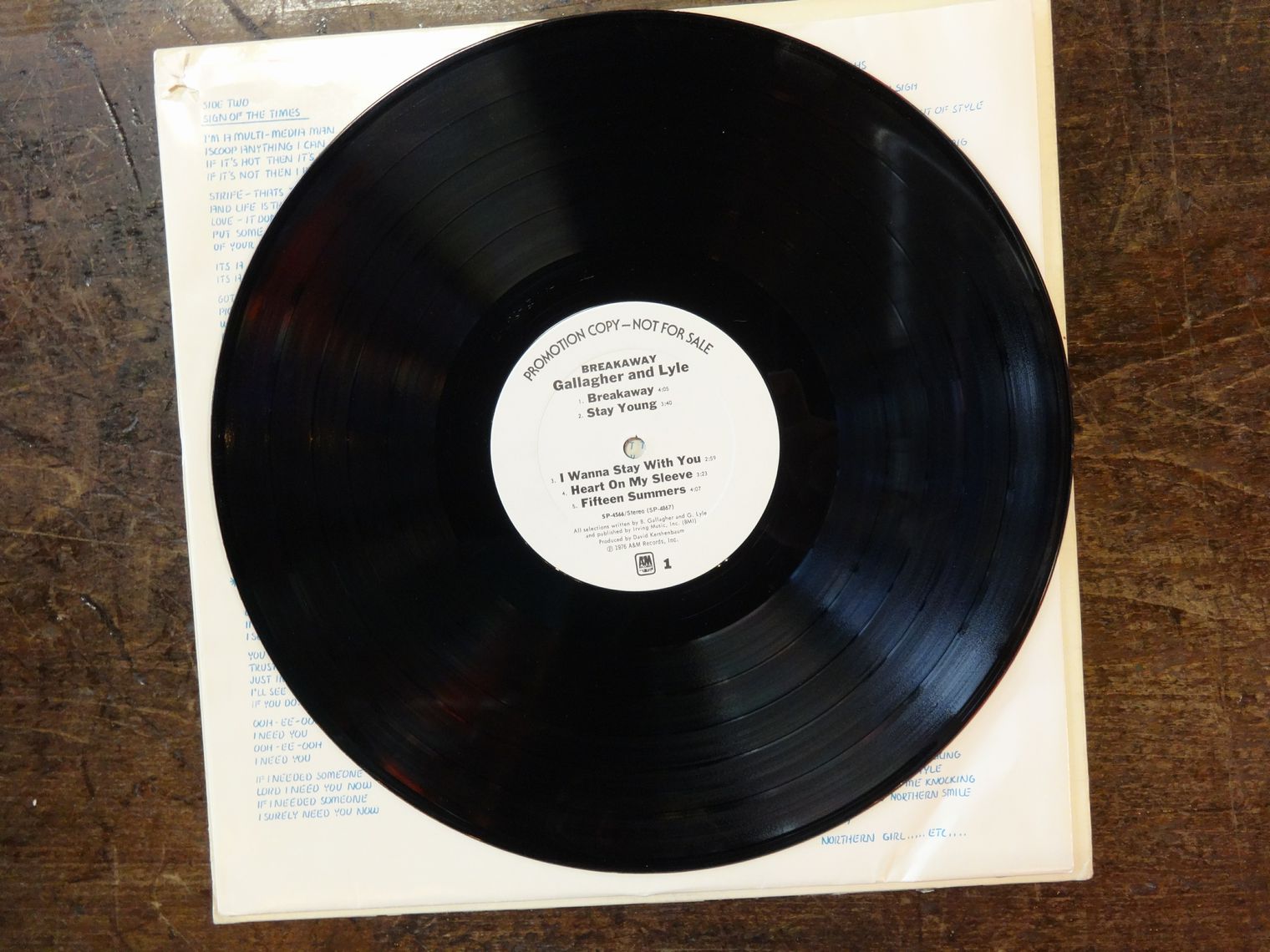 Gallagher and Lyle, Breakaway PROMO album. 1976 A & M records. fair used condition.