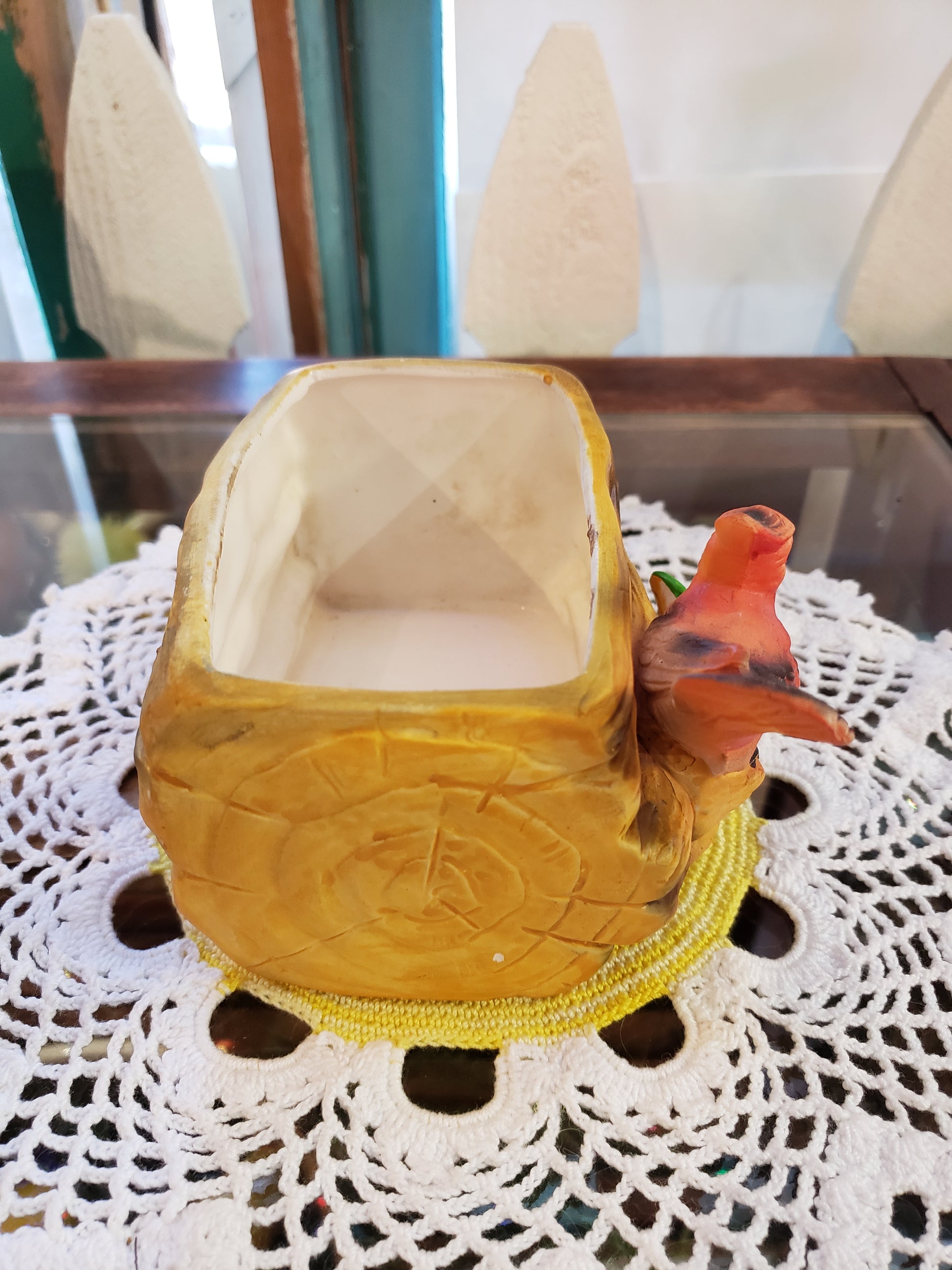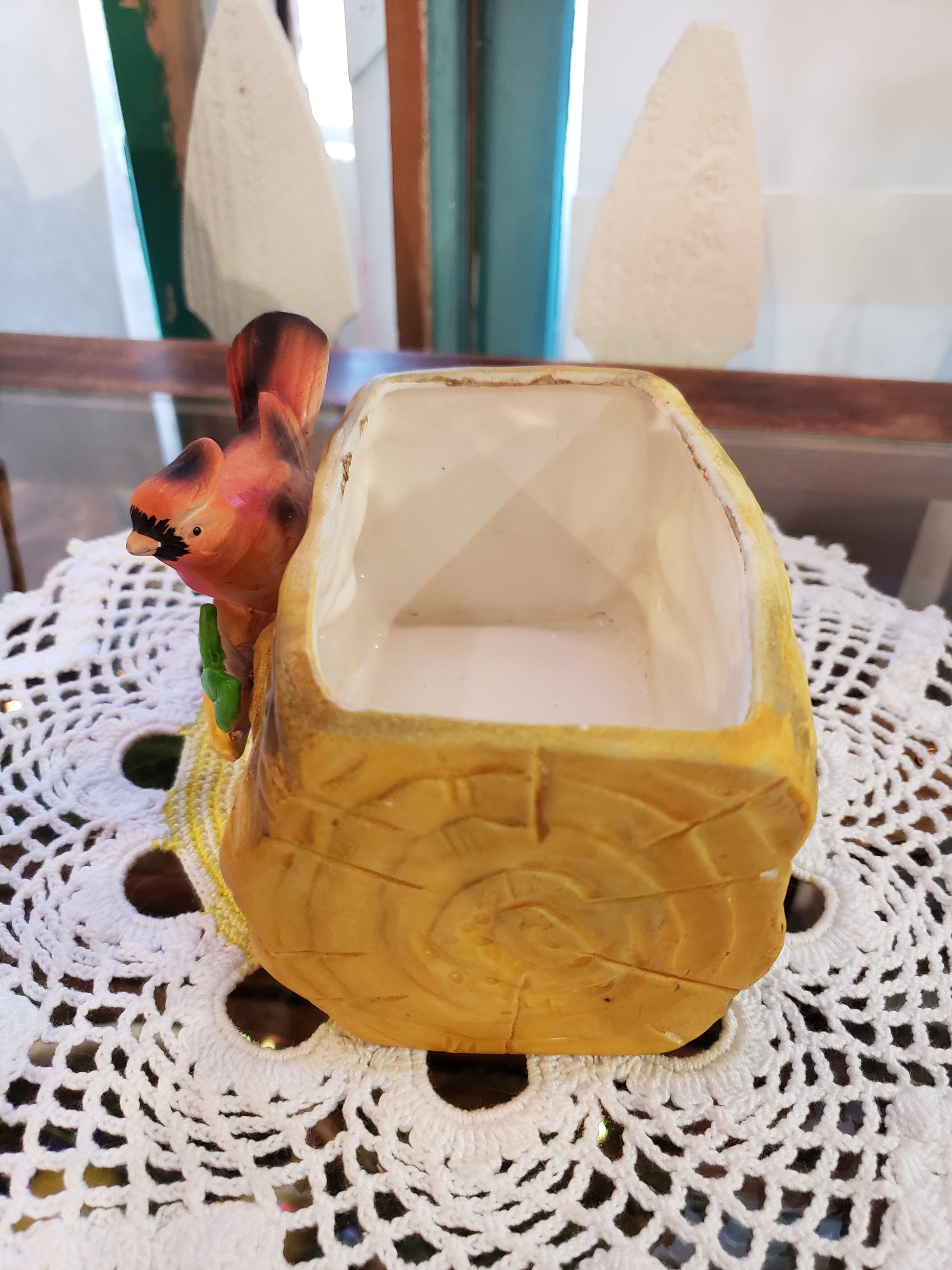 Add some vintage charm to your home with the Inarco Cardinal Planter. This beautifully crafted planter features a lovely cardinal design, bringing a touch of nature indoors. Perfect for displaying your favorite plants and adding a pop of color to any room. A must-have for any plant lover! It has the Inarco Japan sticker on the base as well as the numbers E-6643. 5 inches wide, 4.5 inches thick and 3.25 inches tall. Fair vintage condition.