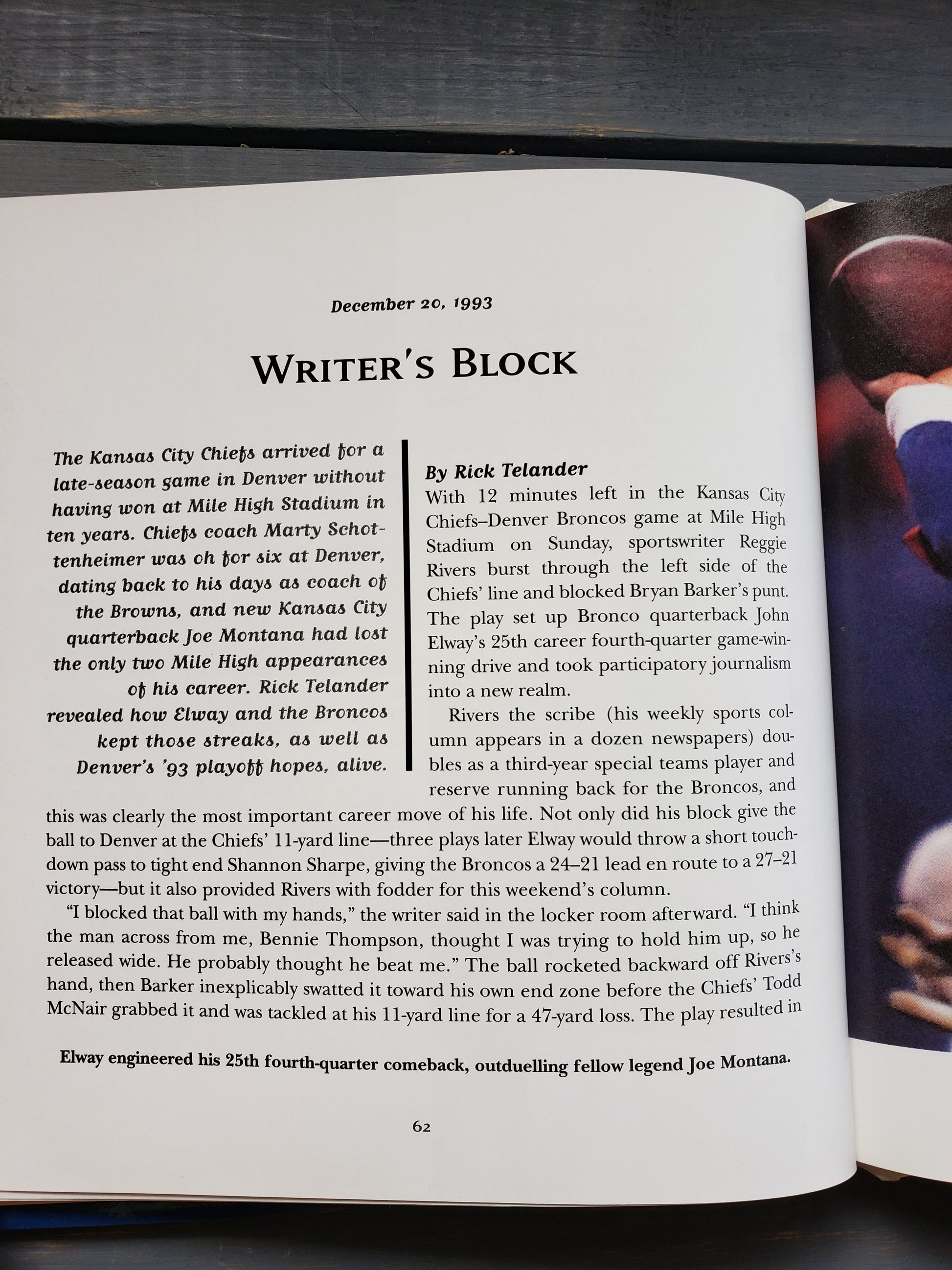 Discover the remarkable journey of John Elway in "The Drive of a Champion" (1998), a vivid Sports Illustrated hardcover. This 96-page collection features full-color photographs capturing Elway in his element, showcasing the skill and determination that defined his legendary career. Perfect for fans and collectors, this book offers an inspiring glimpse into the making of a true football icon. Previously owned, fair condition.