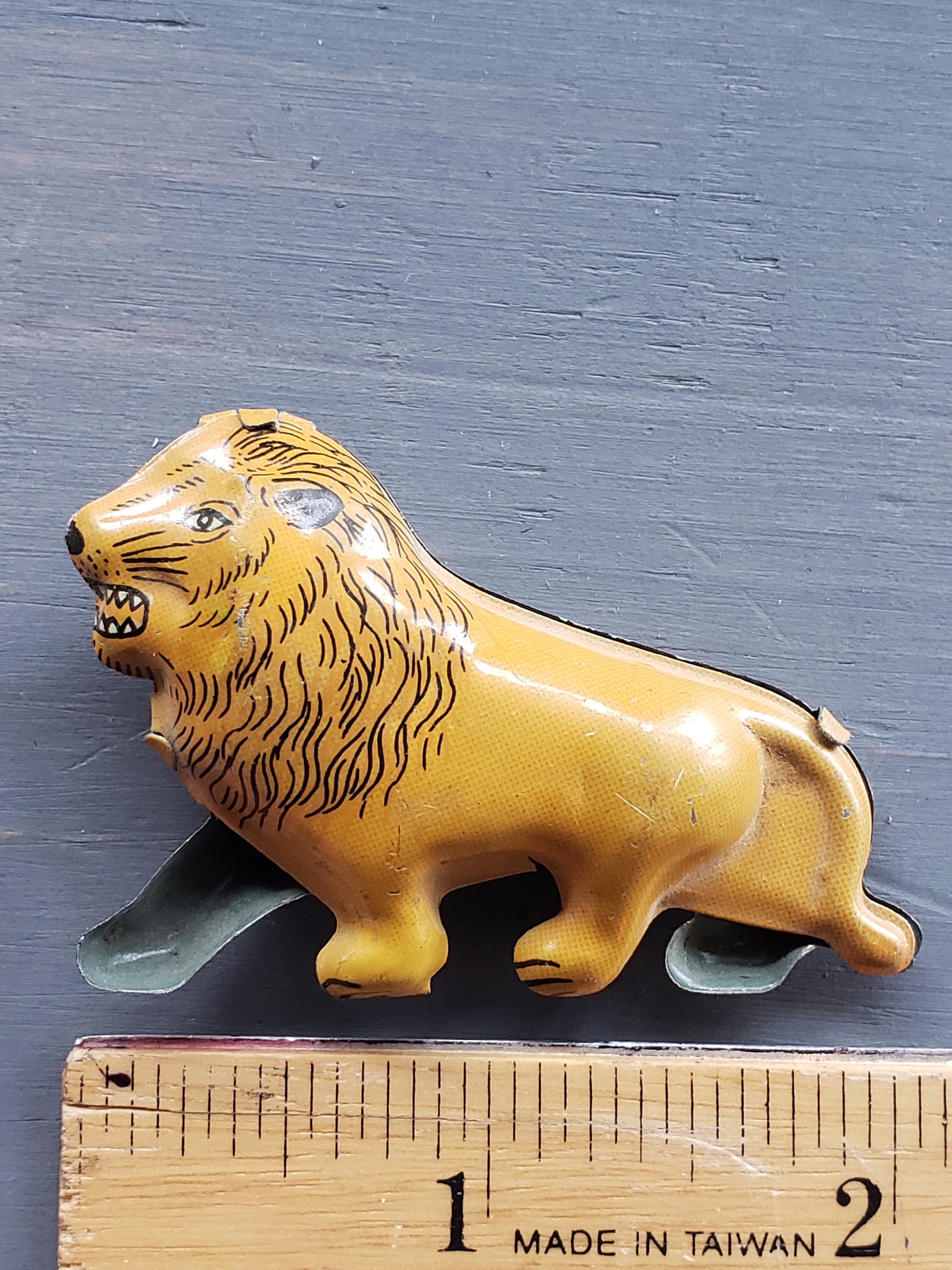 Get ready to ROAR with this little vintage litho lion toy! At only 2 inches long, this adorable toy is in fair vintage condition and is sure to add a touch of whimsy to your collection. Perfect for any fan of quirky and unique finds.