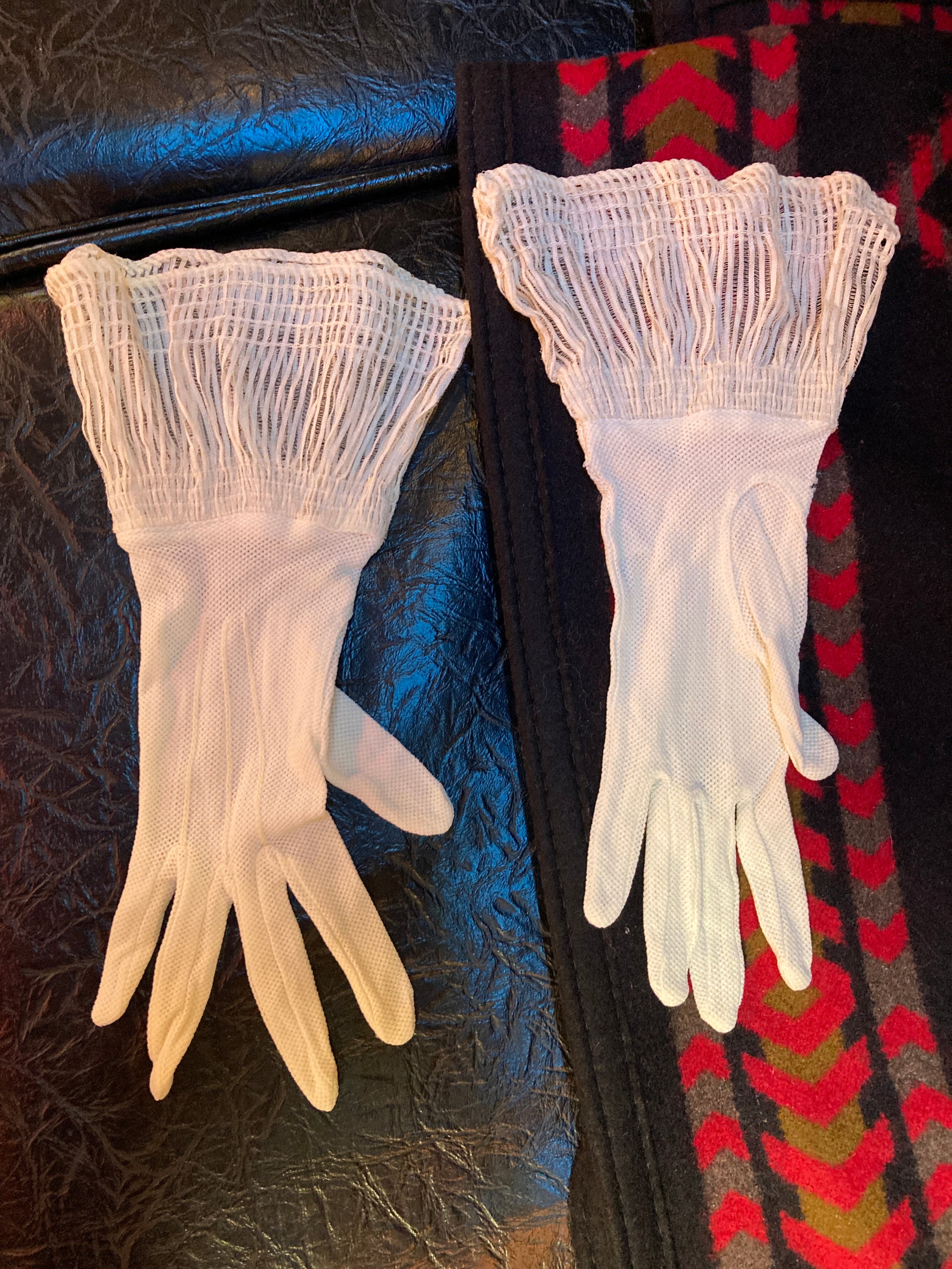 Reminiscent of classic Hollywood, these Mesh Art Deco Gauntlet Gloves are just beautiful. This is the real deal, vintage fashion from the glamorous days of dresses and pearls. They will fit a smaller hand. RED TAG SALE!