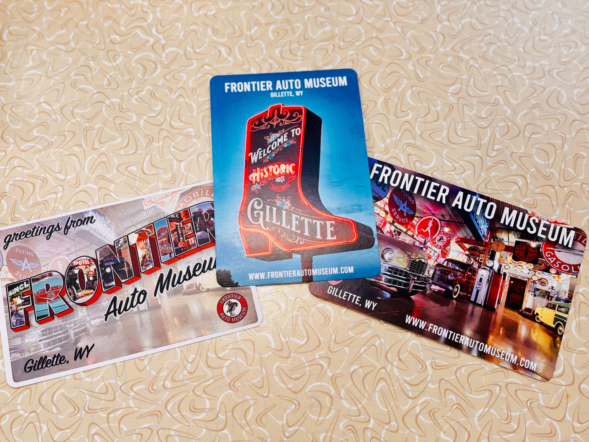 Frontier Auto Museum Postcard, share with your friends a little piece of history out of your trip! The different one of a kind designs to memorialize your trip to Frontier Auto Museum. All the backs have a vintage feel, where you can write down your favorite memory or send a loved one a note.