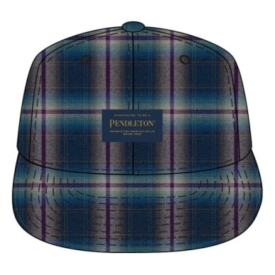 Pendleton Plaid Flat Brim hat in Grey Turquoise Ombre