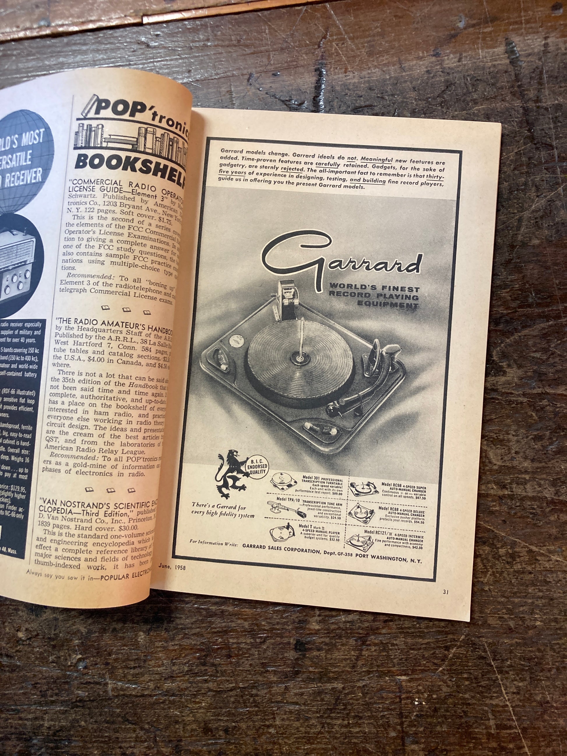 Popular Electronics Magazine June 1958, In fair vintage condition.