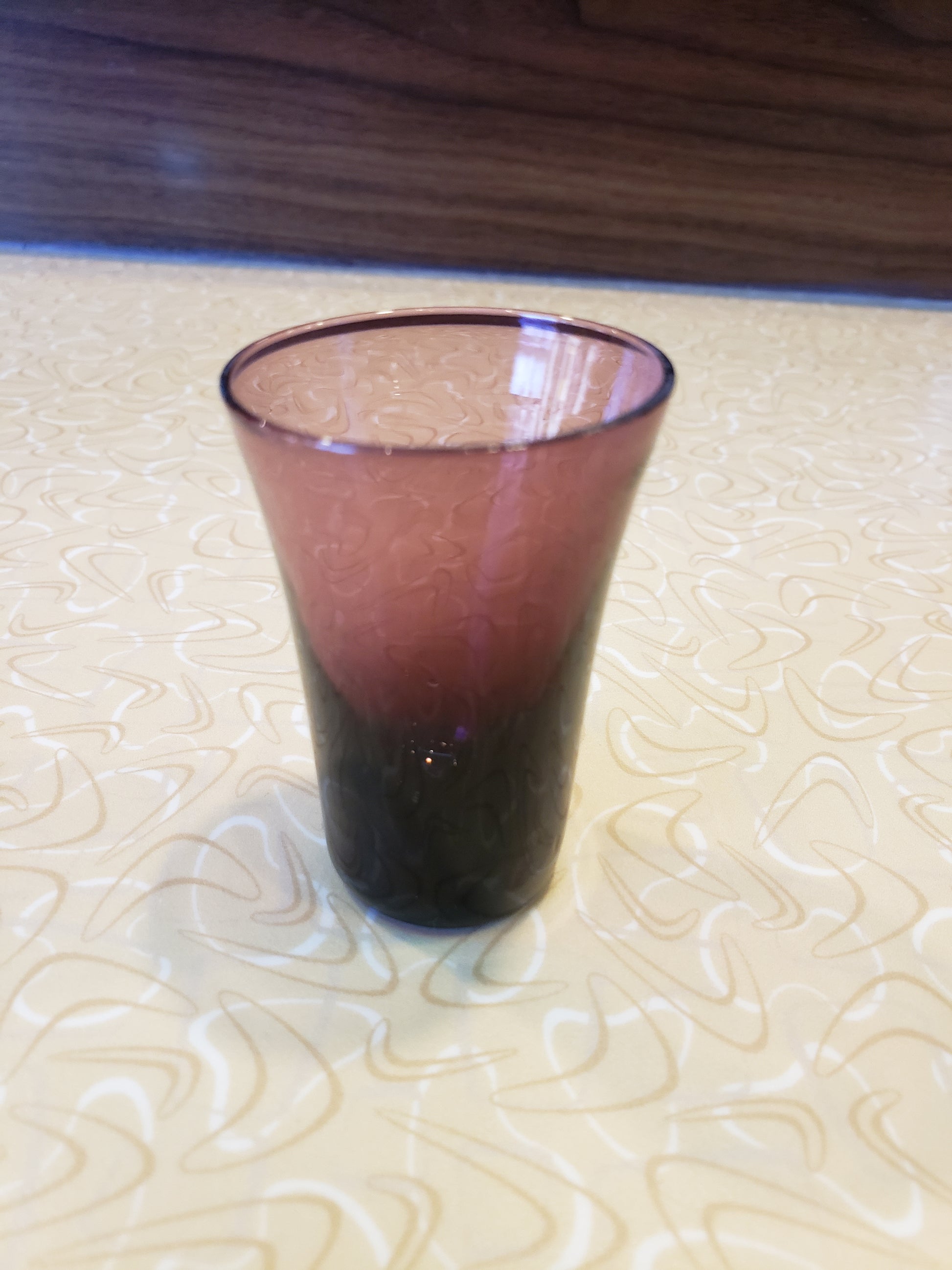 Purple blown glass shot glass, a dark purple color. No chips, fair vintage condition. Recently reduced price.