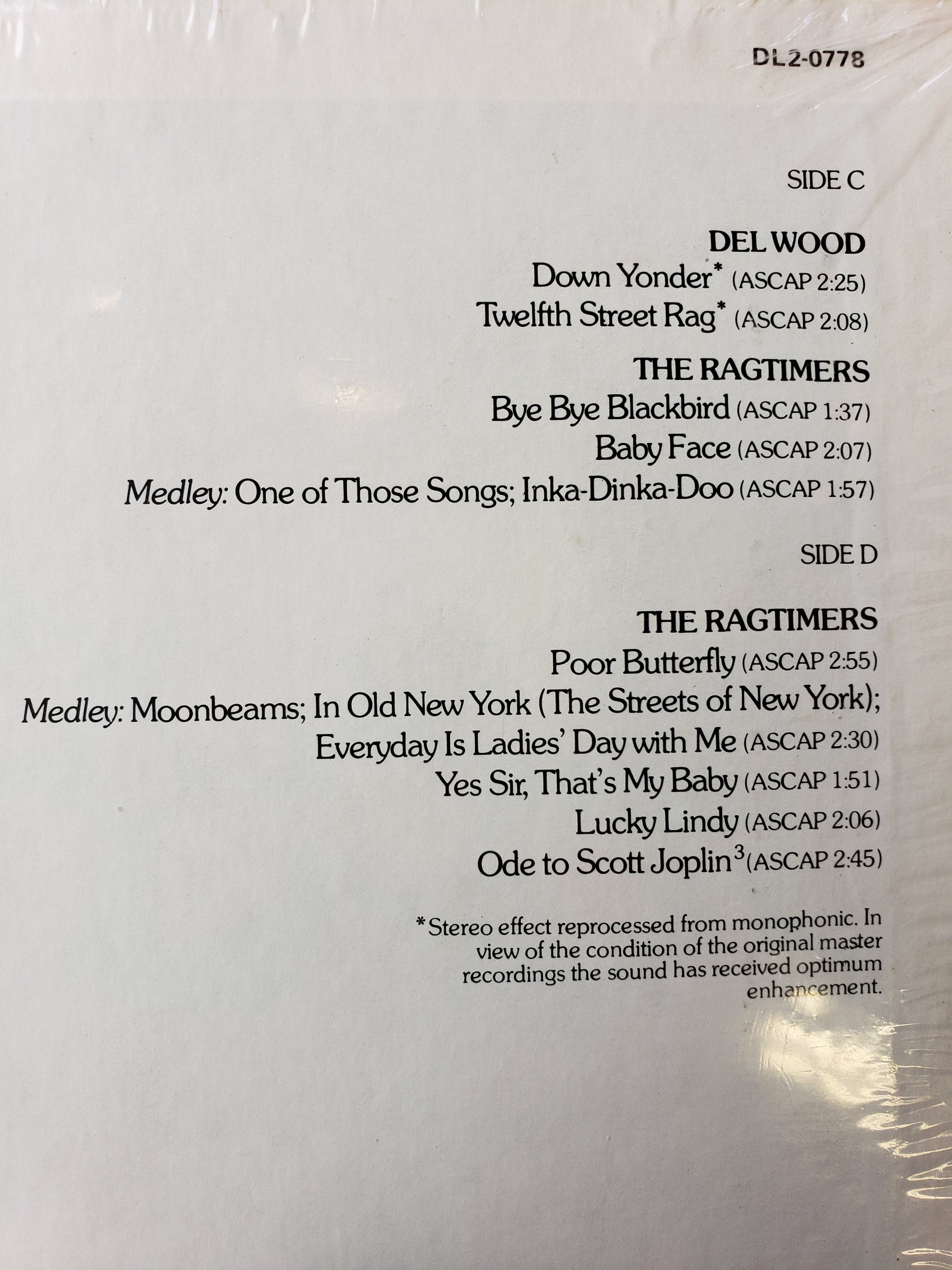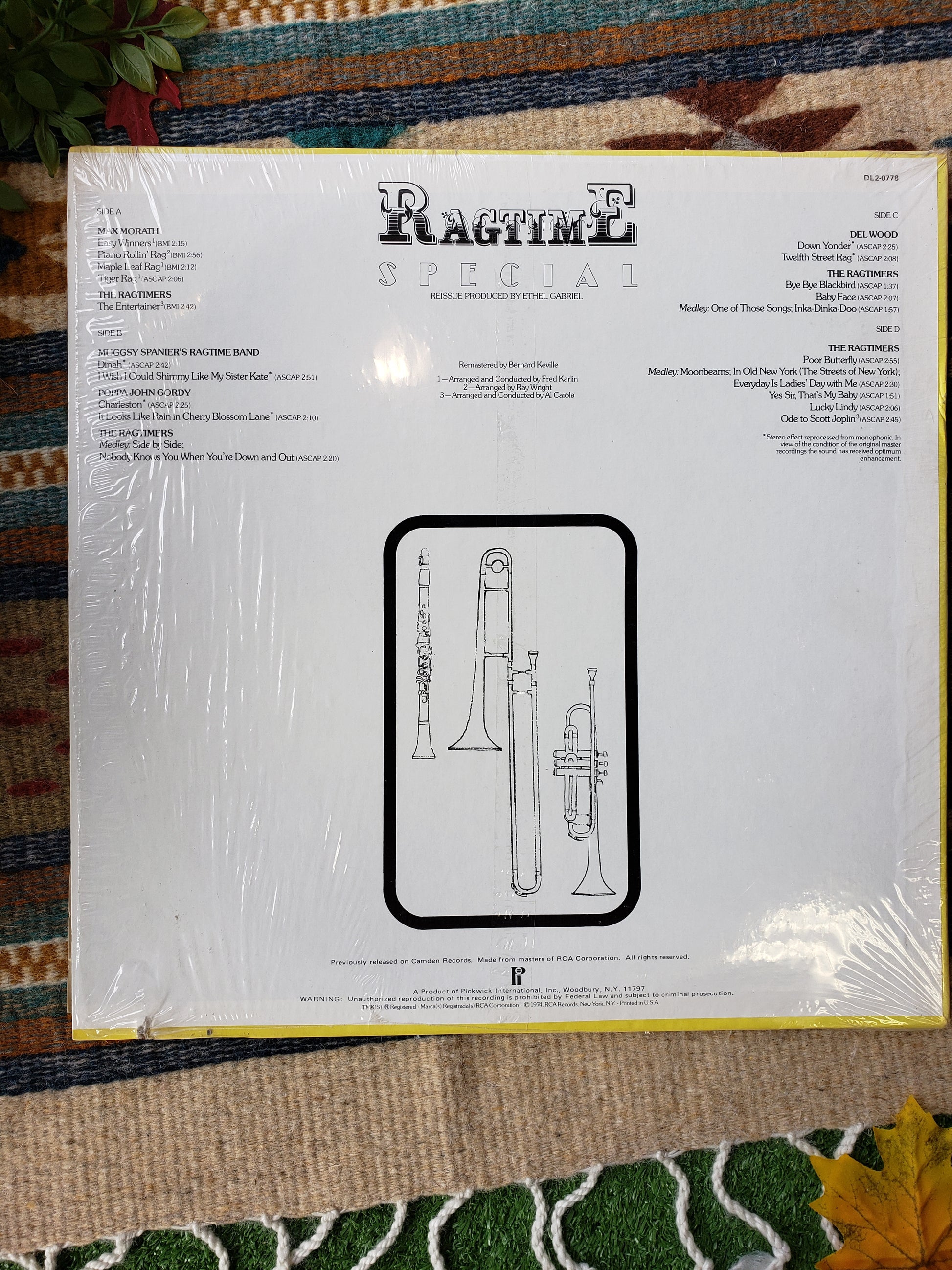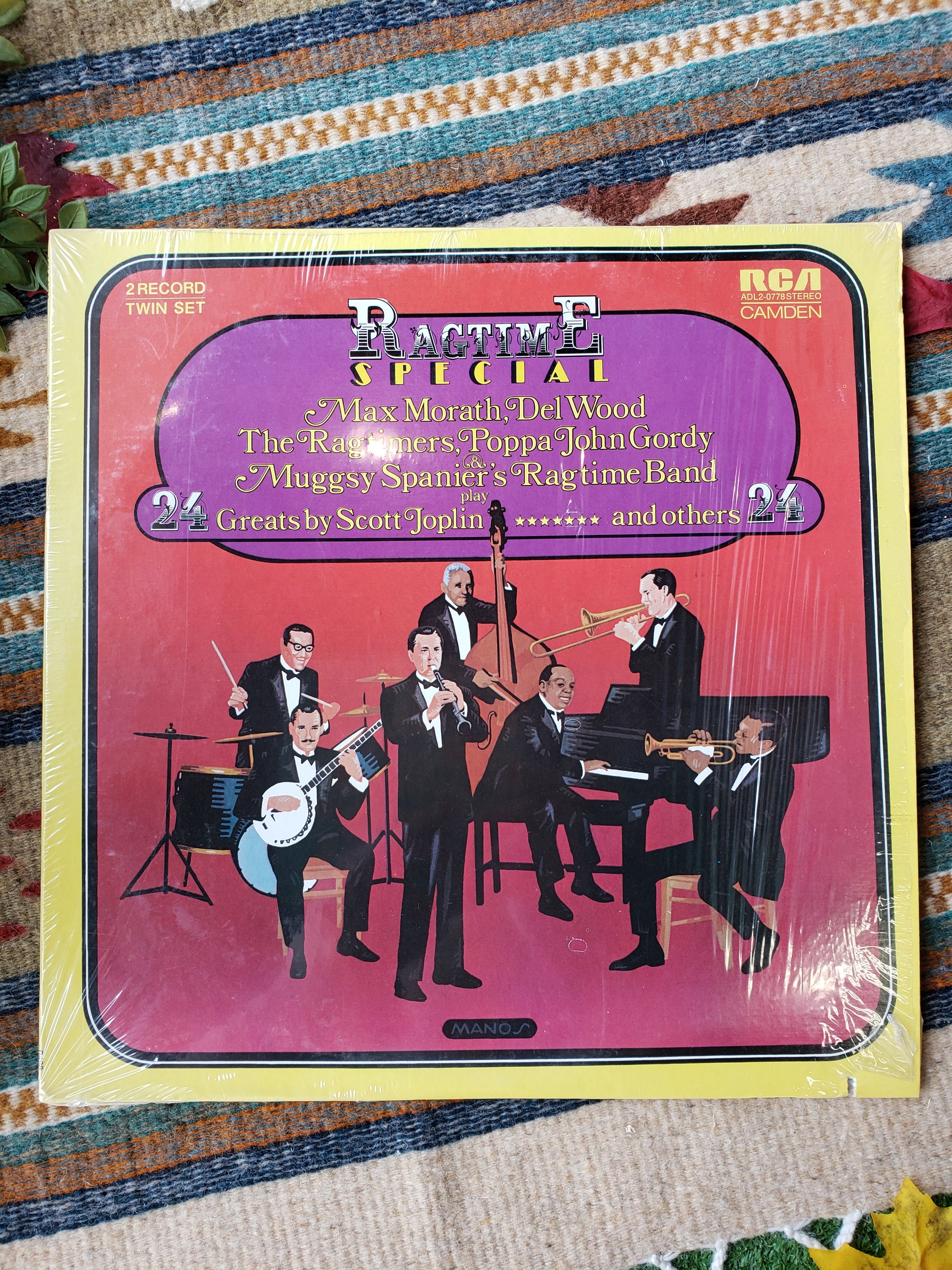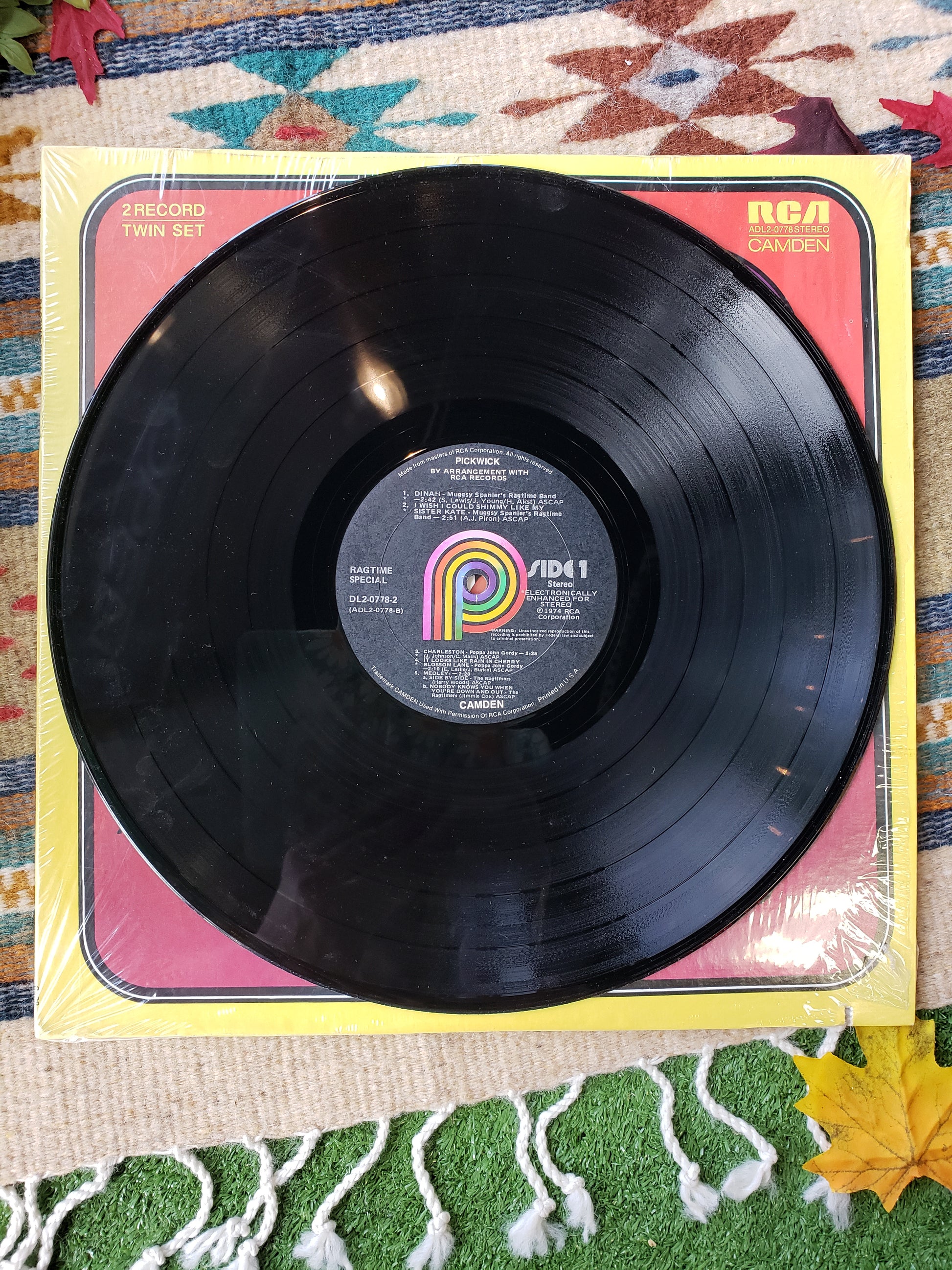 RCA Camden two record set featuring great performers such as: Max Morath, Del Wood, The Ragtimers, Poppa John Gordy, Muggsy Spanier's Ragtime Band and many more. Vinyl is in fair used condition.