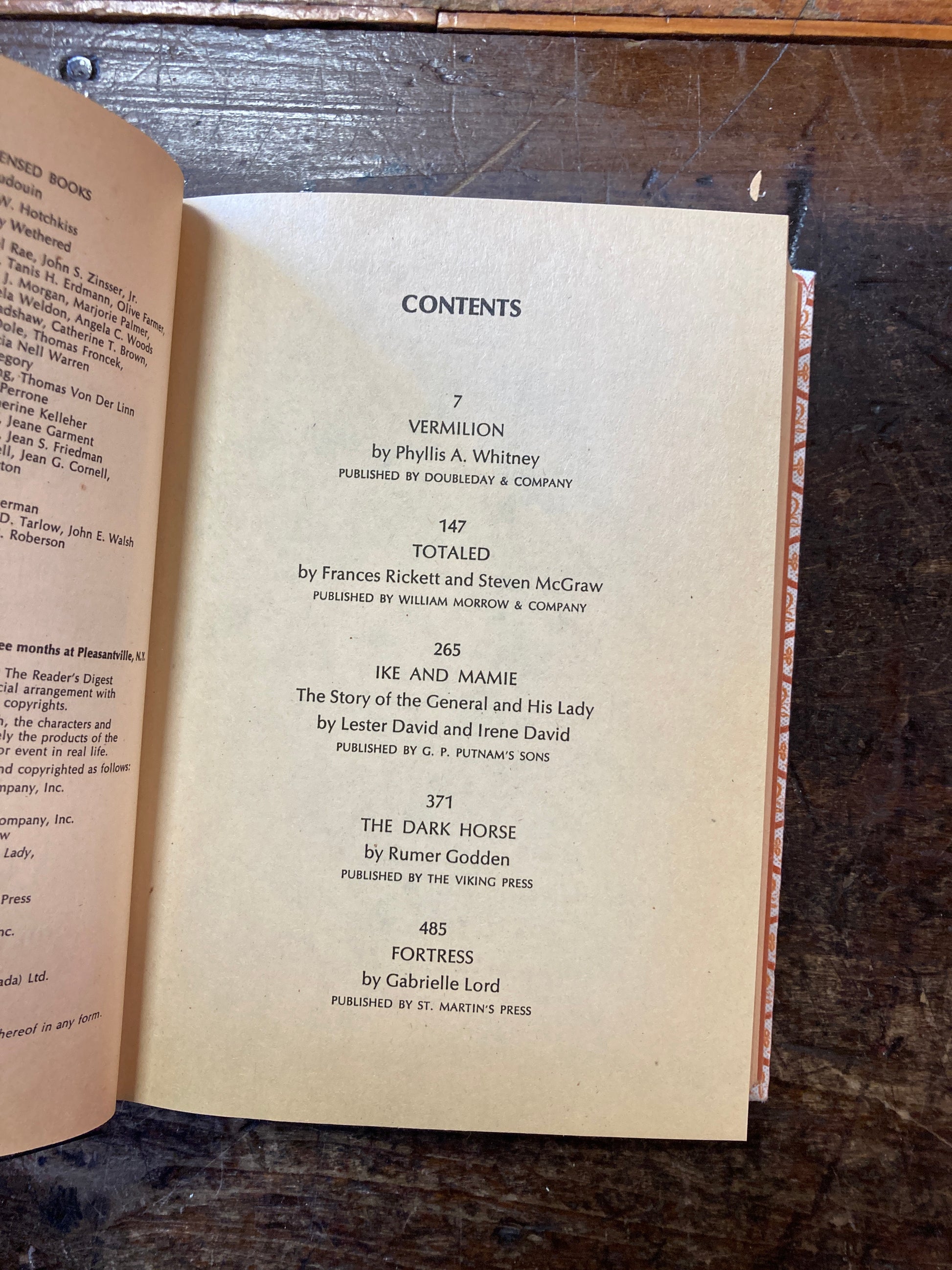 Reader's Digest Volume 5 1981 "Vermilion" "Totaled" "Ike" and Mamie" The Dark Horse" Fortress" In fair used condition, all pages are accounted for, well taken care of. In solid shape.