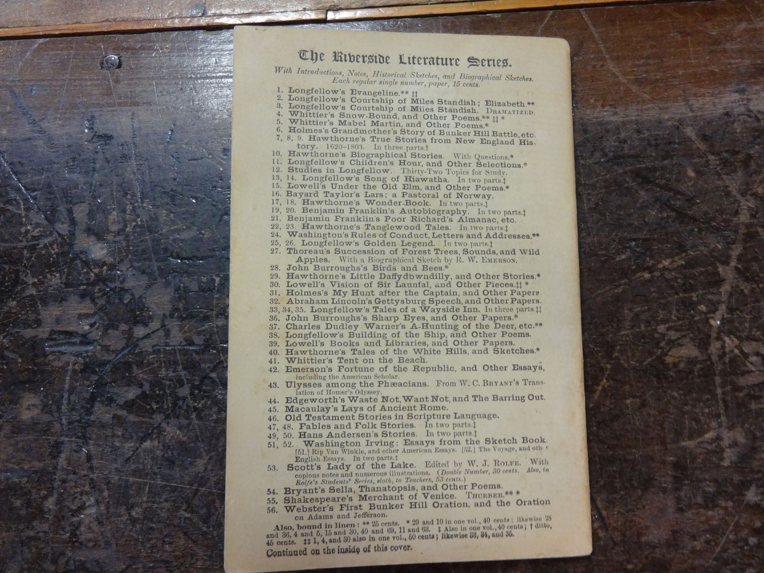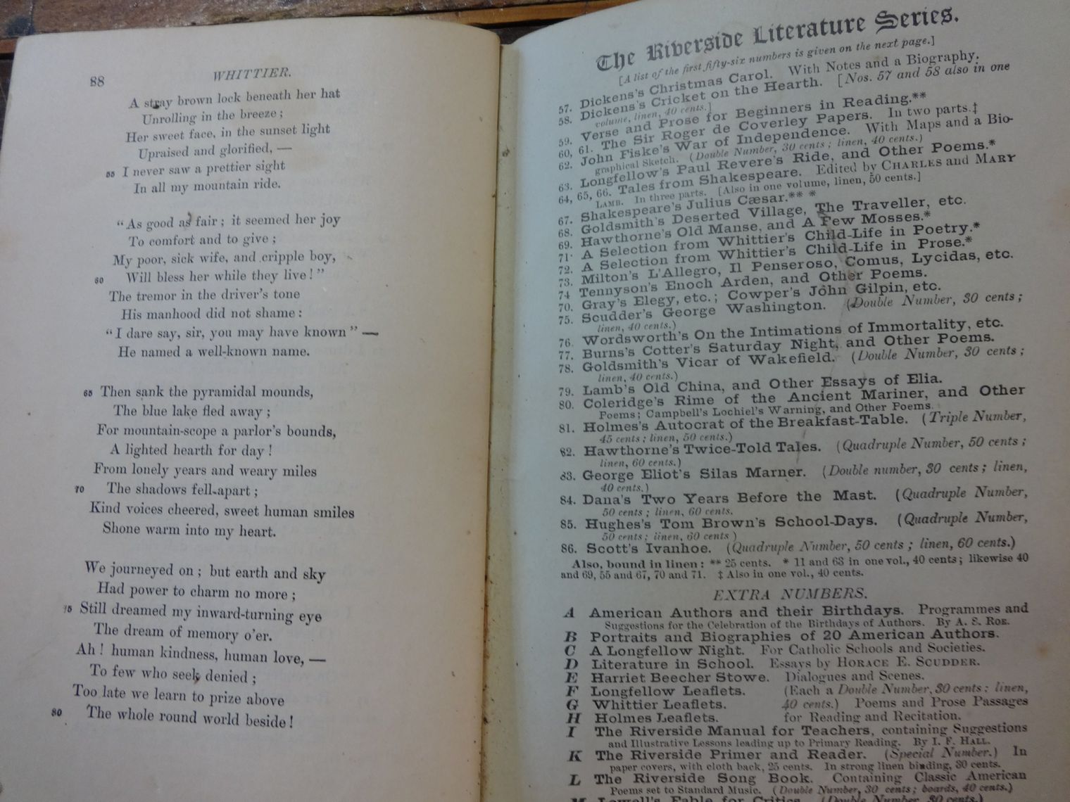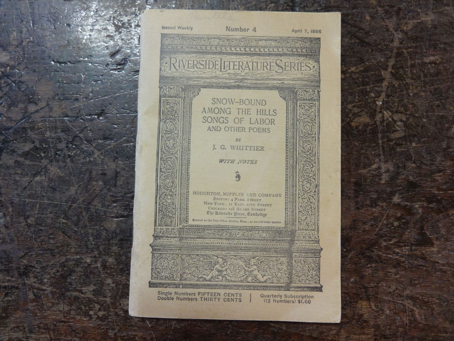 Riverside Literature Series, Poems by J.G. Whittier. April 7, 1886 issue. 88 page paperback. Fair used condition.