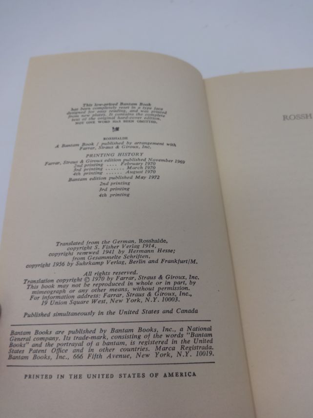 Rosshalde by Hermann Hesse - copyright 1972- classic paperback book in fair used condition.