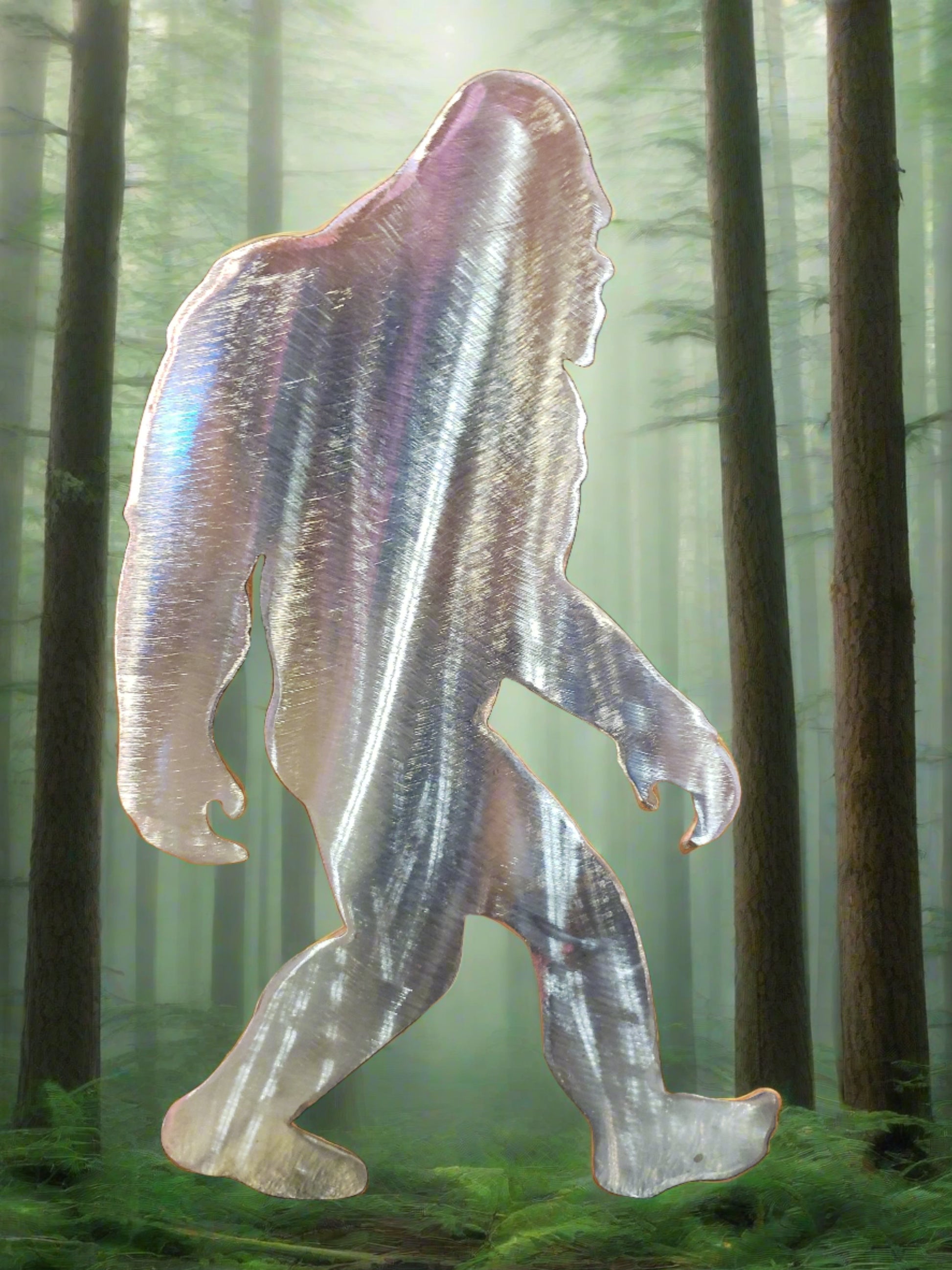 Custom made Metal Sasquatch to add some wild to your wall. He measures 12 x 6.5 inches and was made by Diverse Metals of Casper, Wyoming. Increase the bigfoot sightings in your area with this shiny metal Sasquatch.