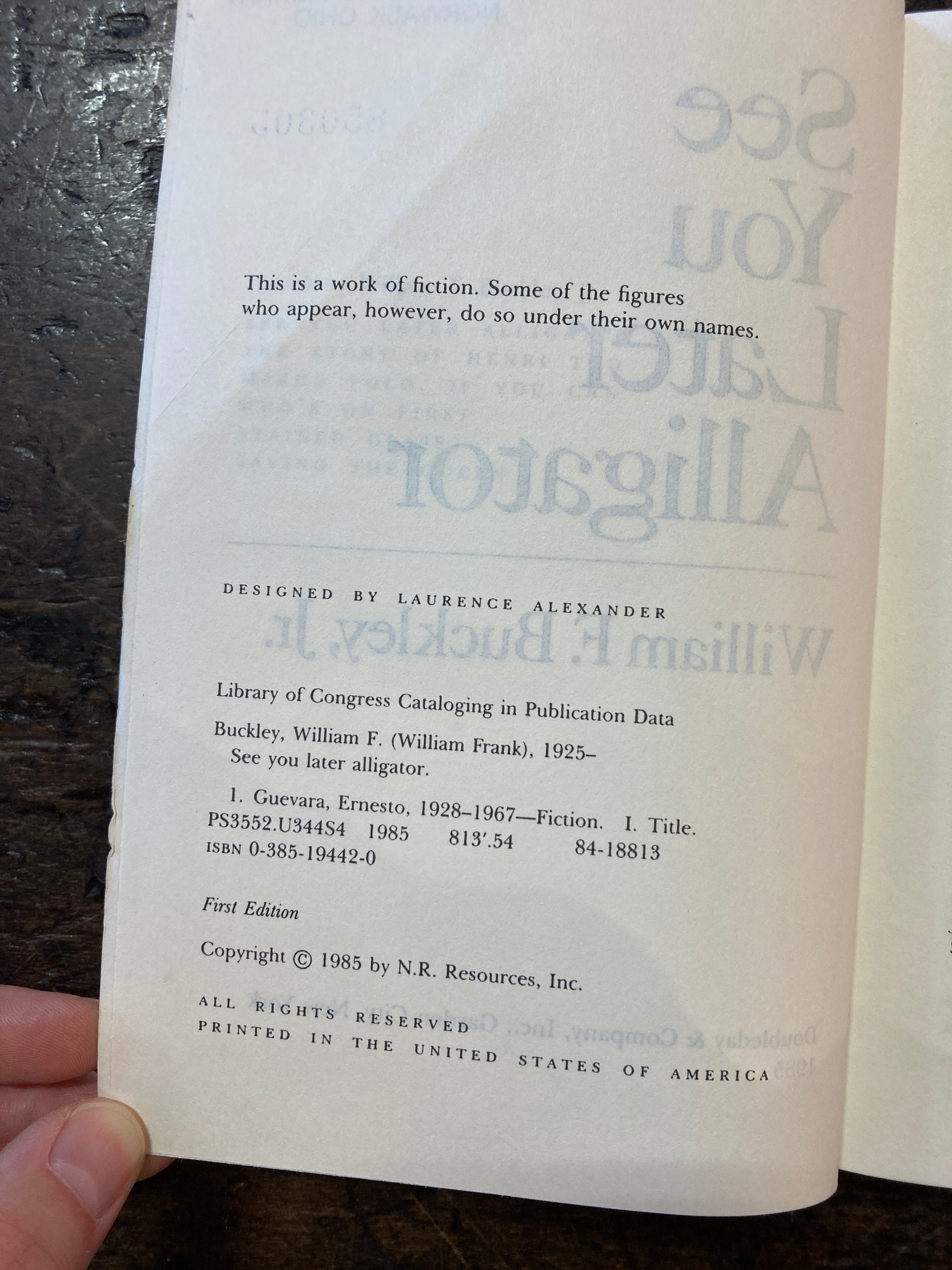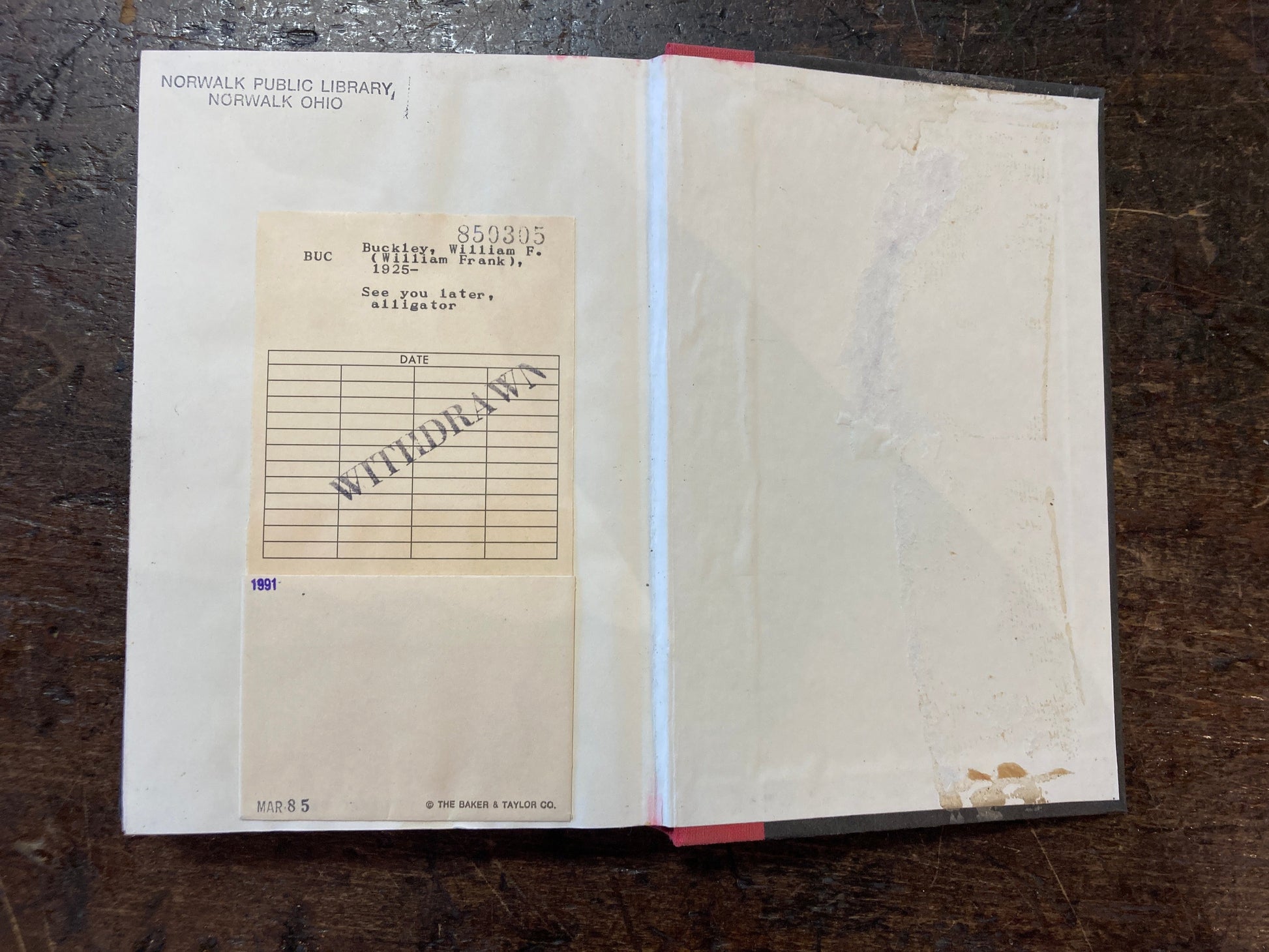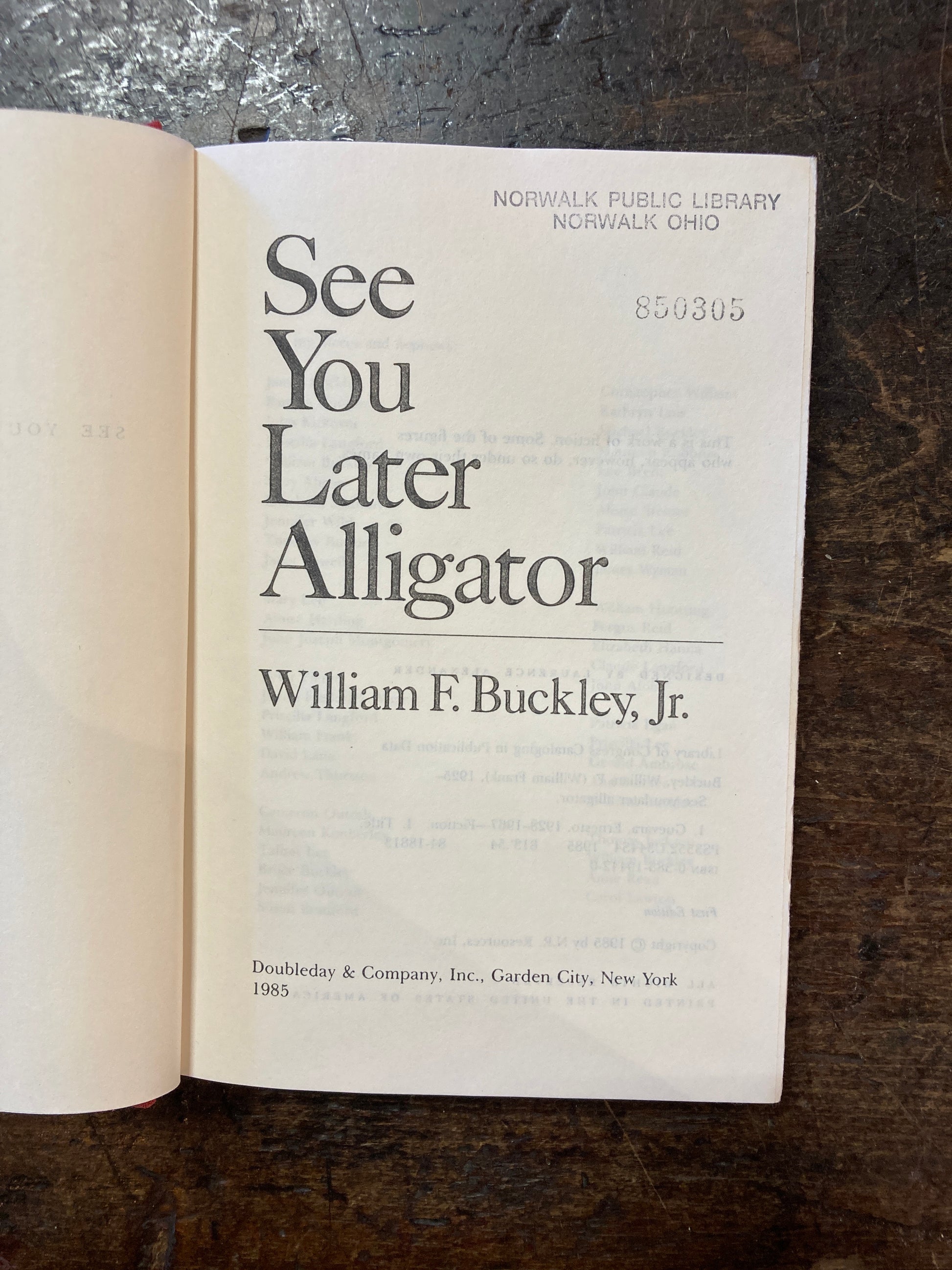 See You Later Alligator, by William F. Buckley, Jr. (1985) This book was from Norwalk Public Library Norwalk Ohio. In fair used condition.
