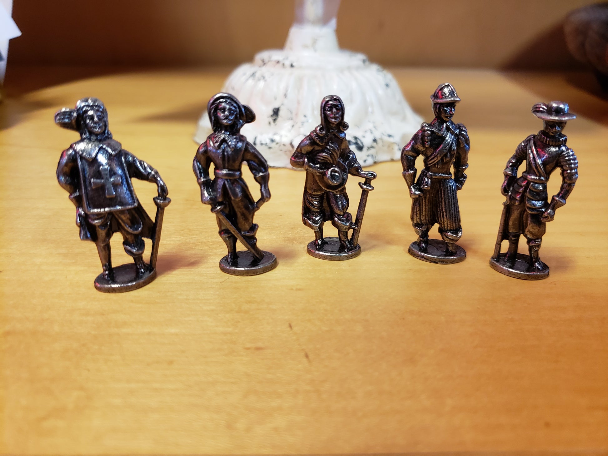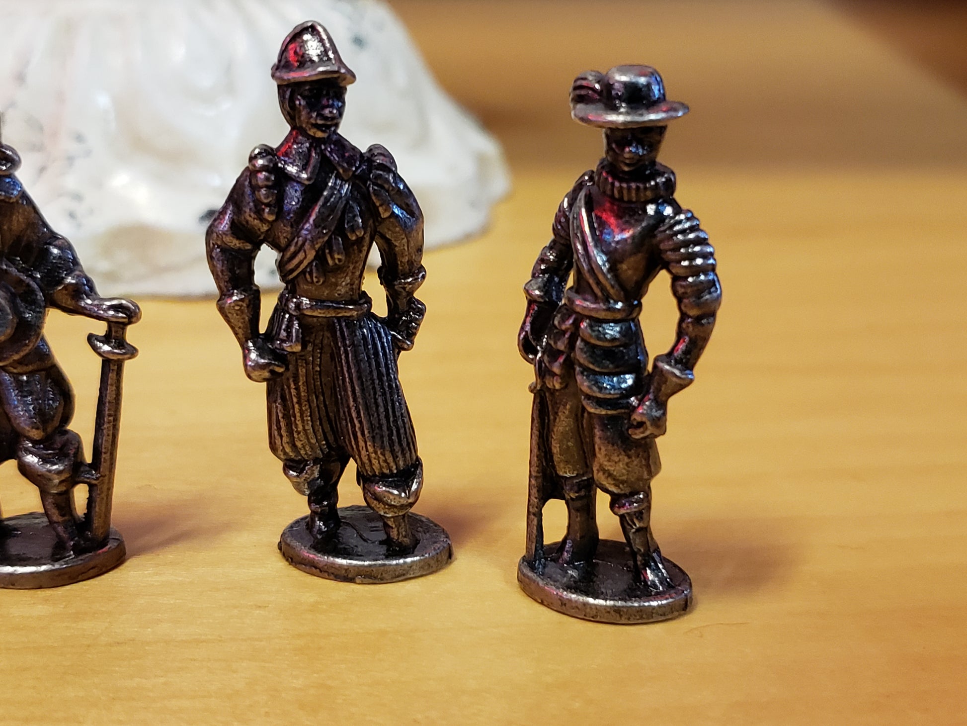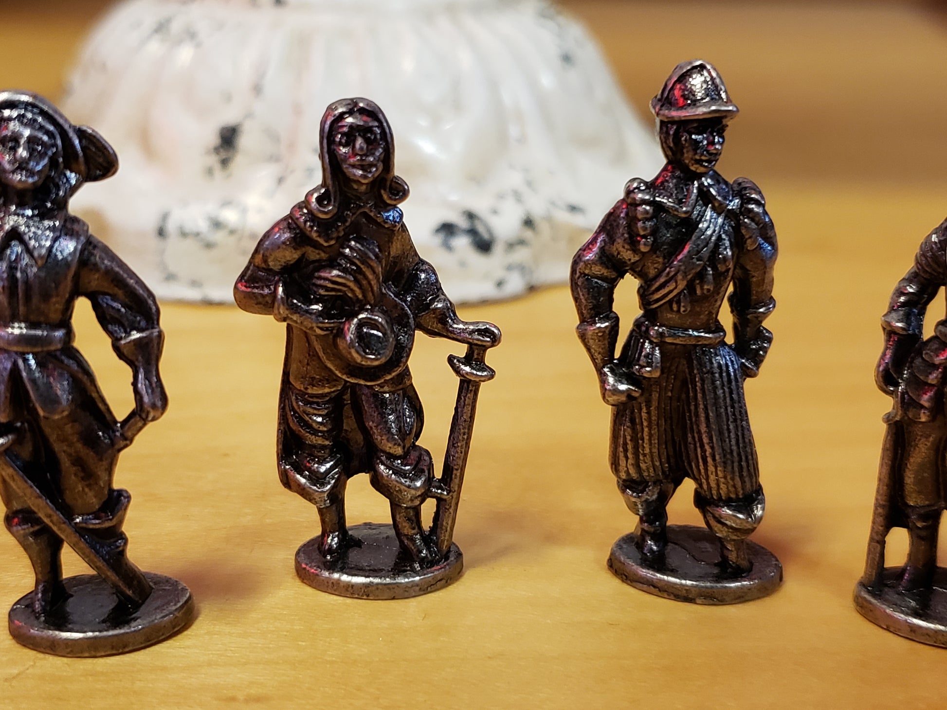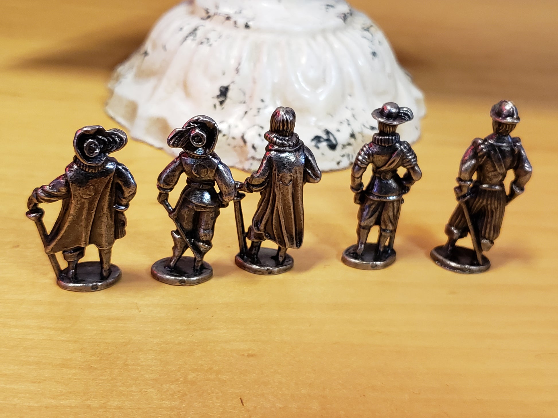 Five 1.5 inch tall pewter soldiers representing warriors from the time of the Crusades. Highly detailed figures are in fair vintage condition.