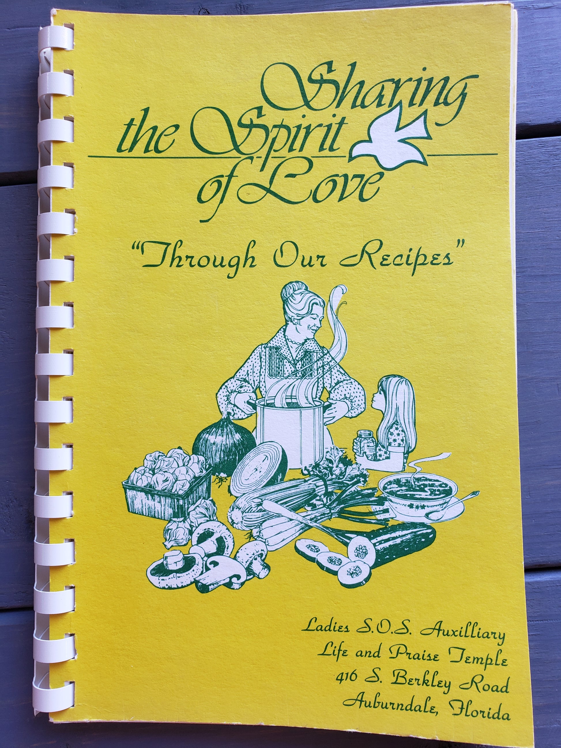 Indulge in the warmth and comfort of home-cooked meals with our cook book, "Sharing the Spirit of Love Through Our Recipes." Featuring delicious recipes from Auburndale, Florida, this spiral bound book is the perfect companion for creating meals that are filled with love and memories. Elevate your cooking experience with our heartfelt collection. Fair condition.