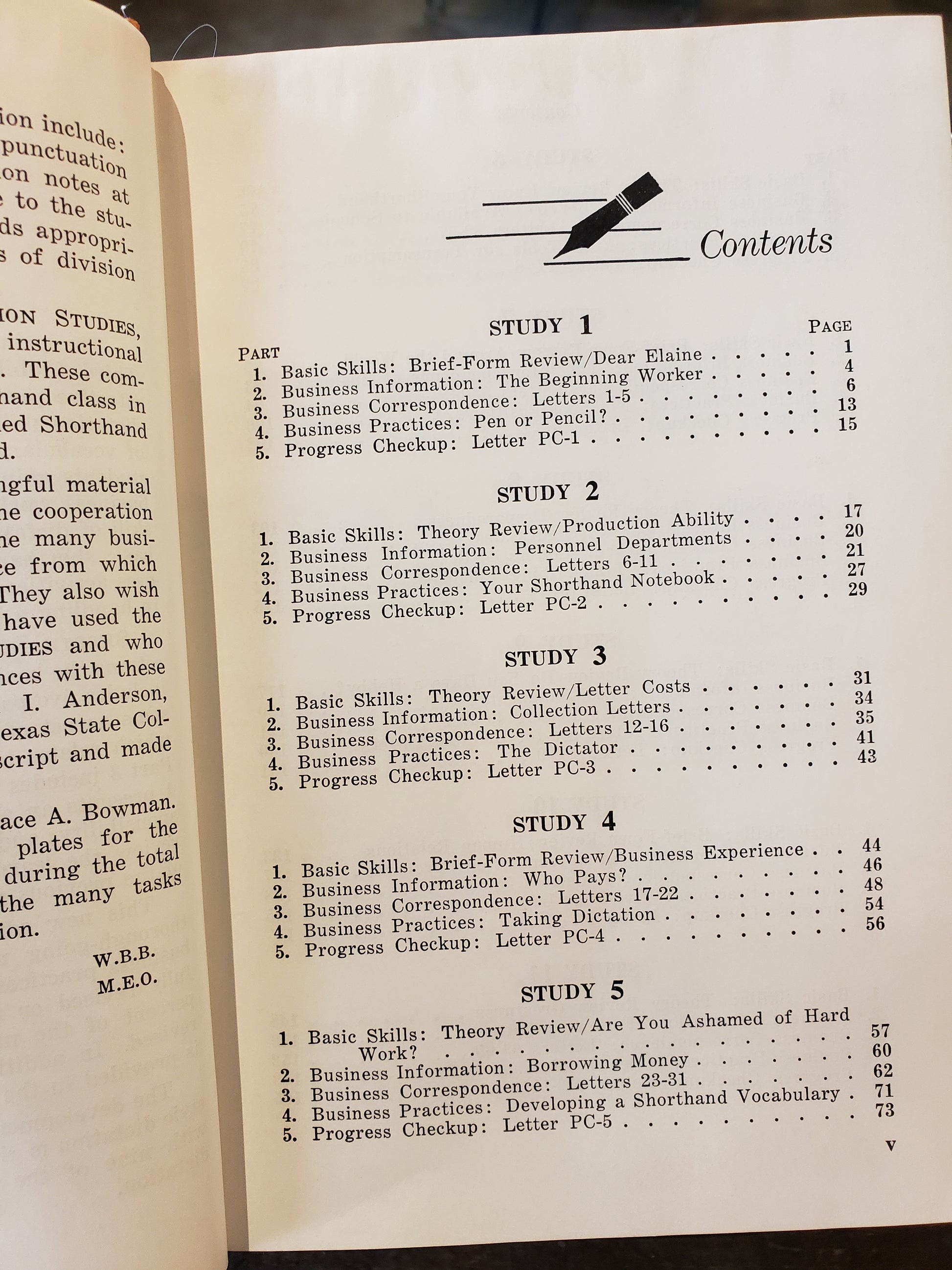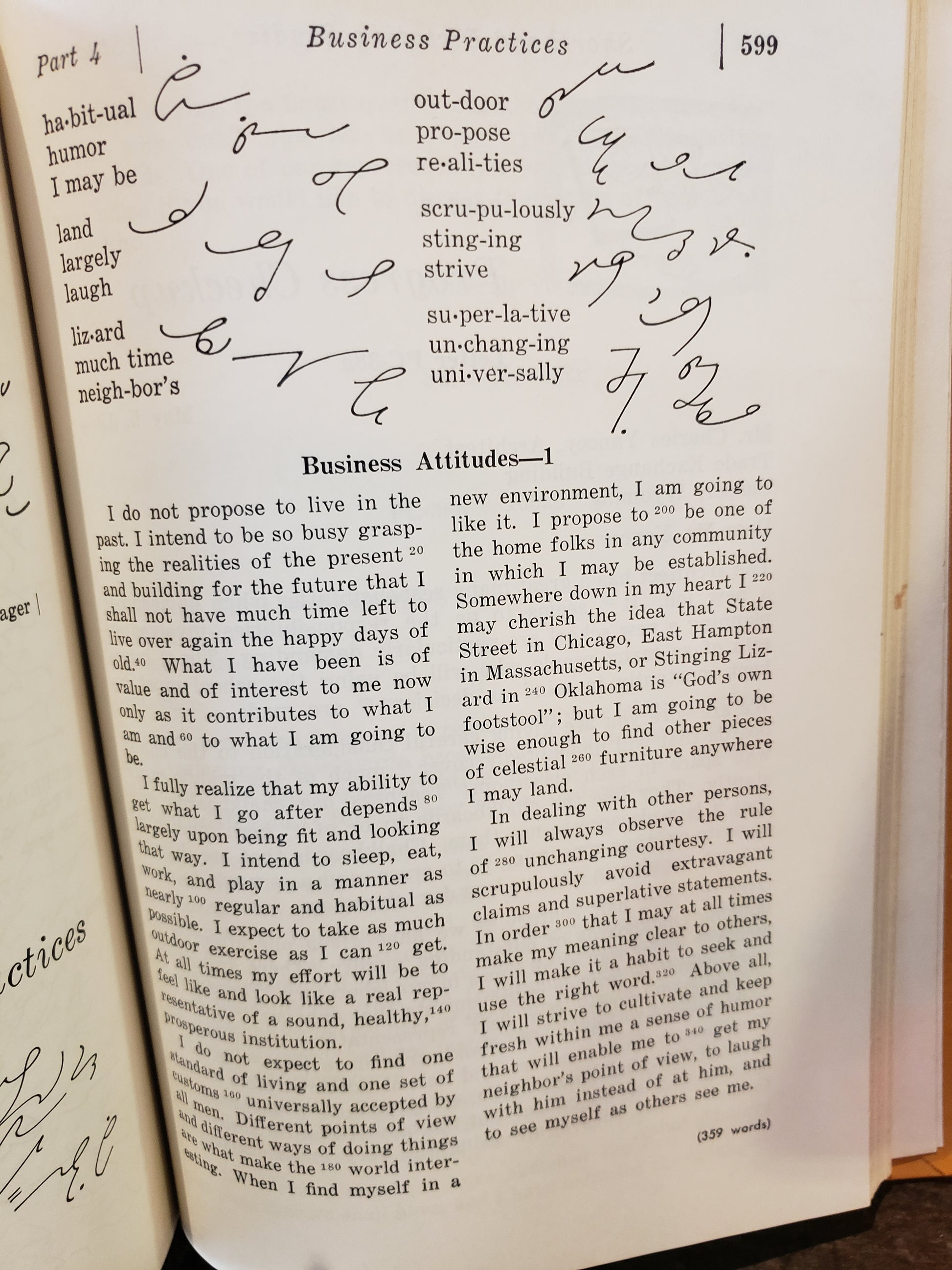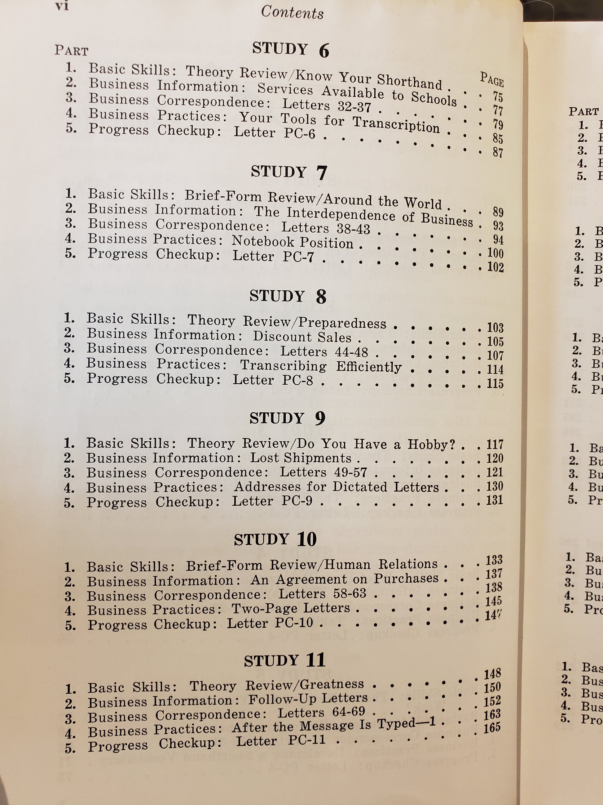 Shorthand Dictation Studies Third (Jubilee) Edition by Bowman- Oliverio. 674 page hardback published in 1966. Textbook to teach the language of dictation to future office workers. It is in fair vintage condition. There is slight water damage across the top, please see pictures for details. This informative book not only teaches shorthand, it also teaches standard business practices such as office organization, office machines, supplies, attitude and much more.