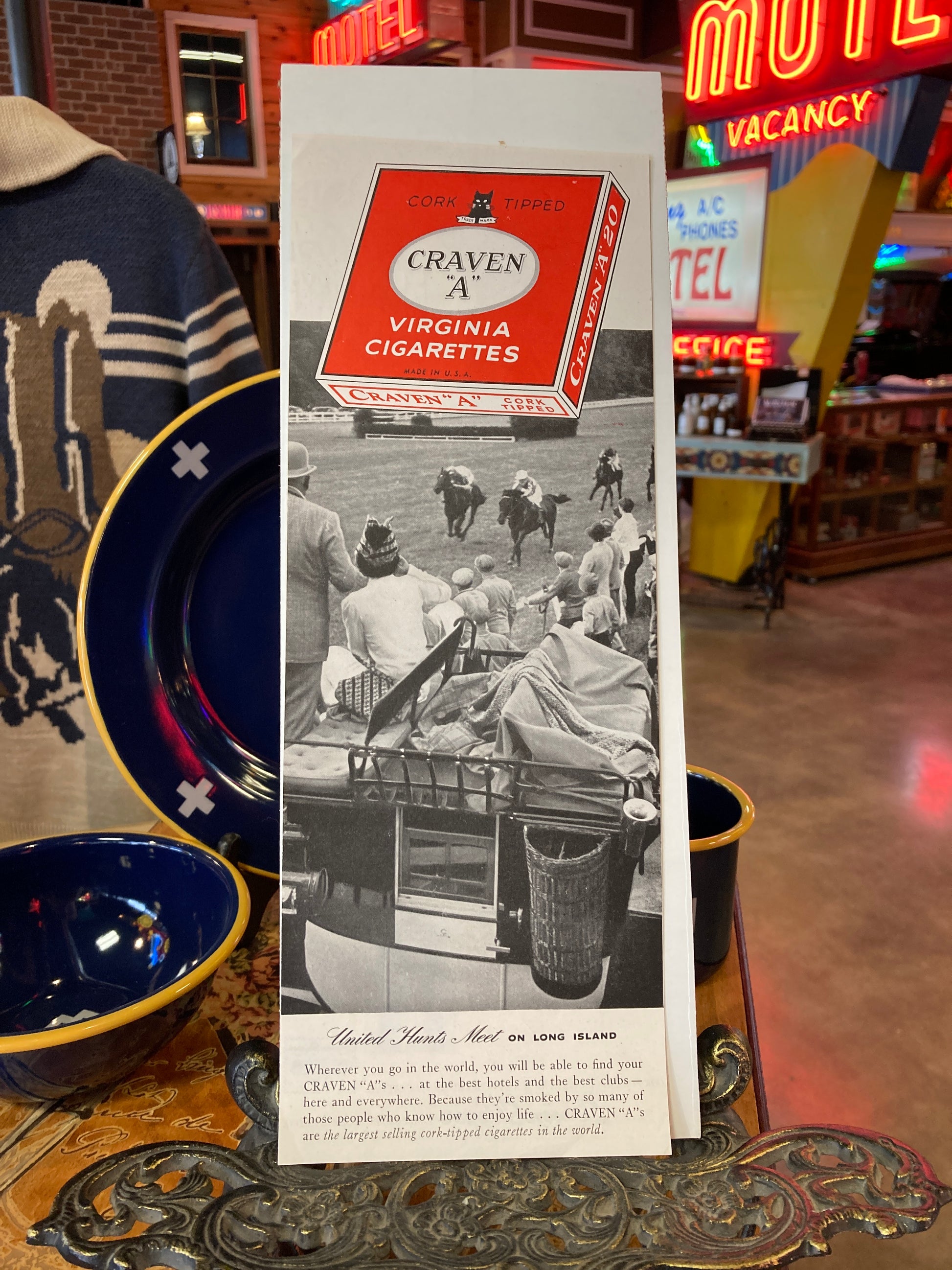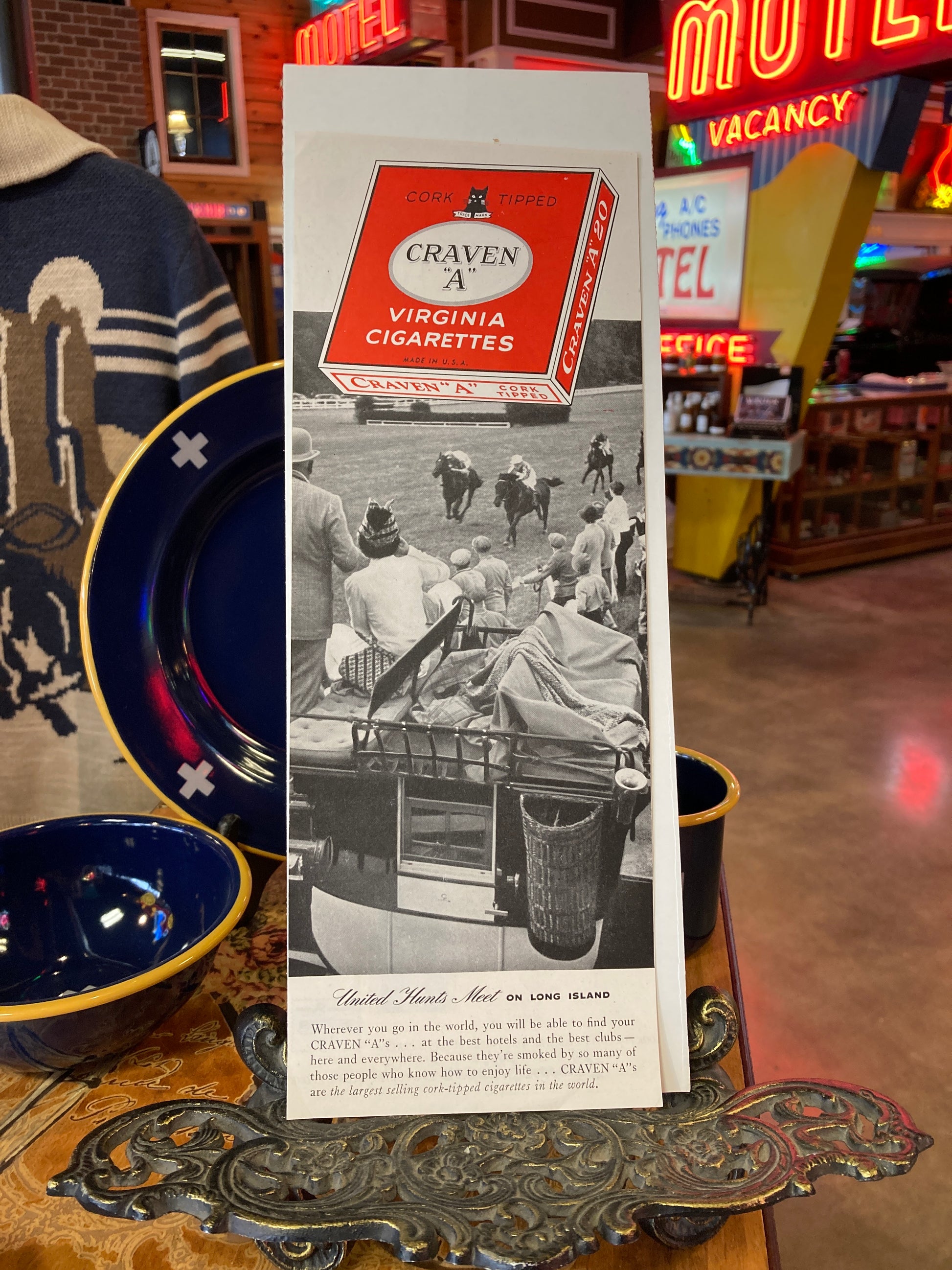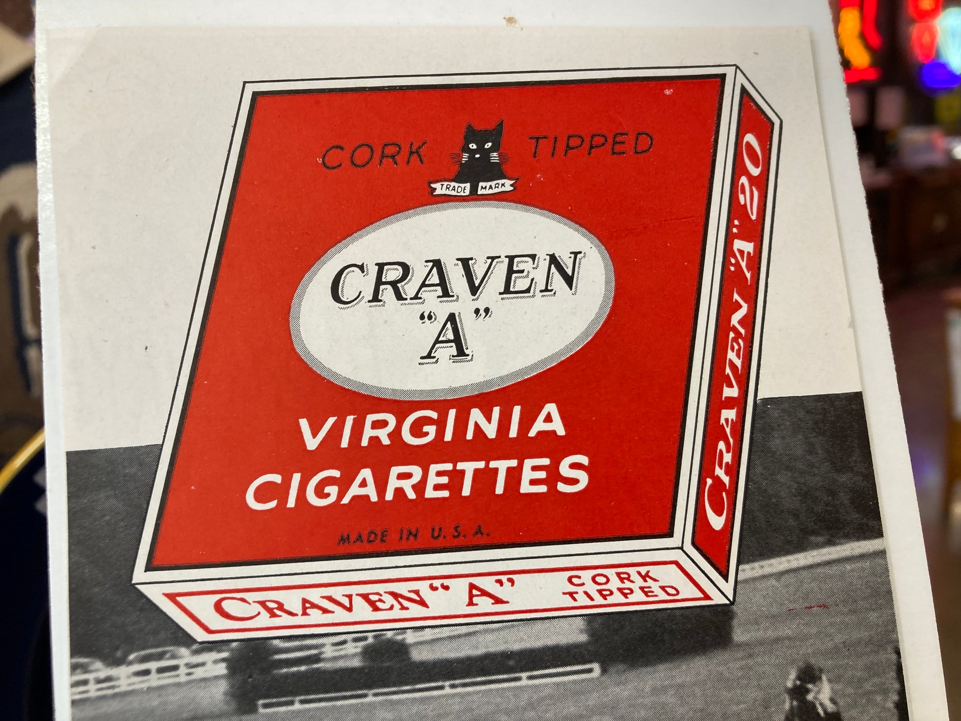 Vintage Cigarette Advertising for Craven "A" 1940's cigarettes. Cut out and suitable for framing. 12 x 5 inches. In fair vintage condition, well taken care of. Collectors item. Fun home decor.