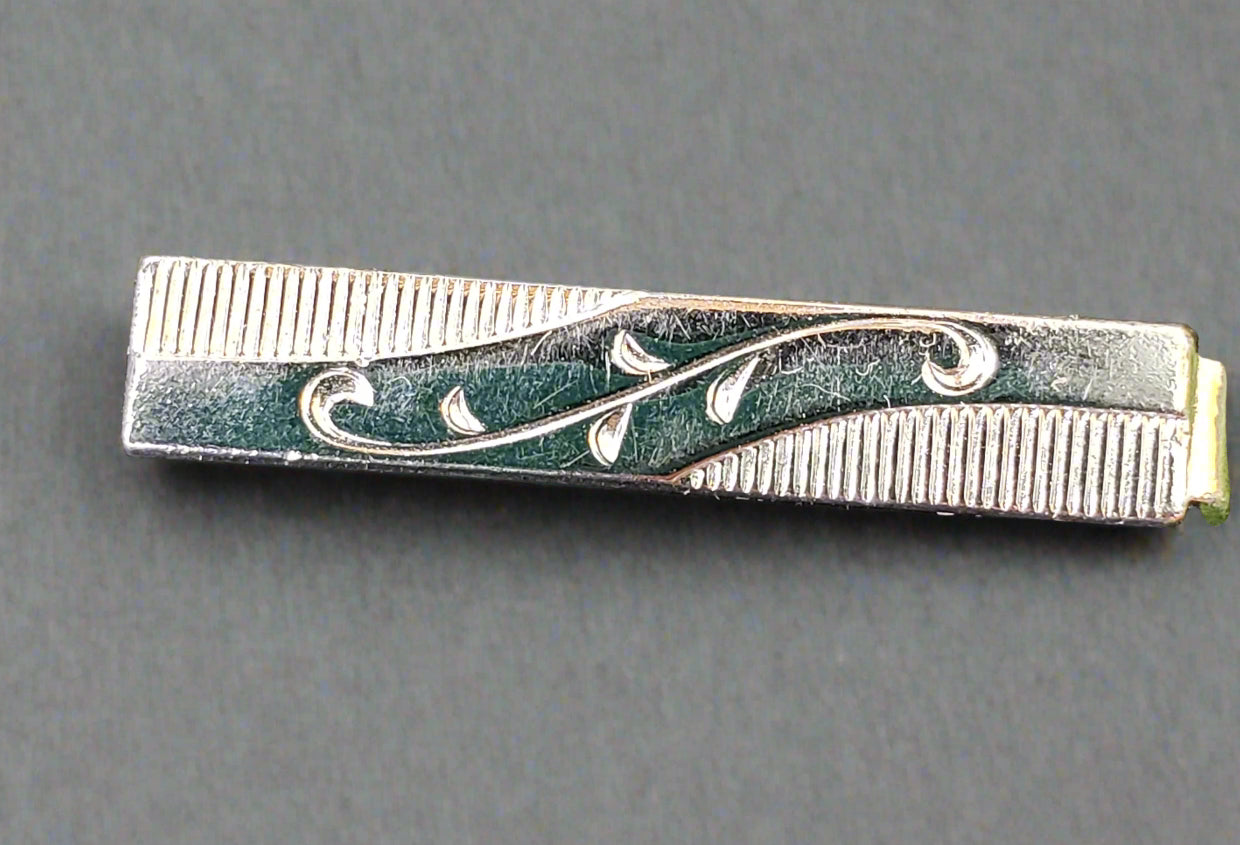 Elevate your style with our Vintage Scroll Style Tie Clip. Made with intricate detailing and a classic design, it's the perfect addition to your formal attire. Keep your tie in place while adding a touch of sophistication to your look. Make a statement with this must-have accessory. Fair condition. It has patent pending etched on the back.