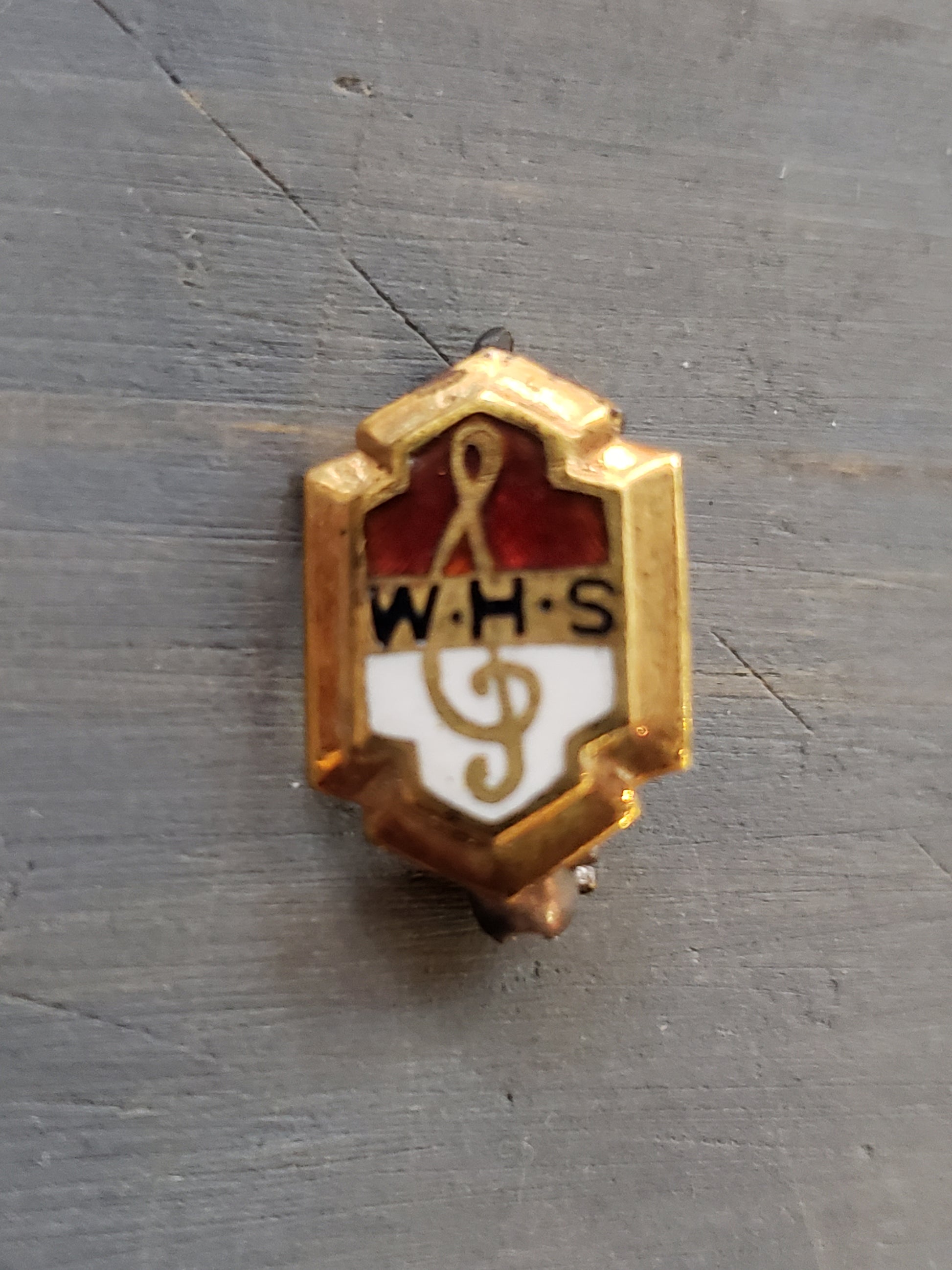 Show off your love for music and your unique style with this vintage WHS Orchestra Pin! Crafted from 1/10 gold-filled material, this shield-shaped pin is a timeless piece in fair condition. A must-have for any music lover's collection.