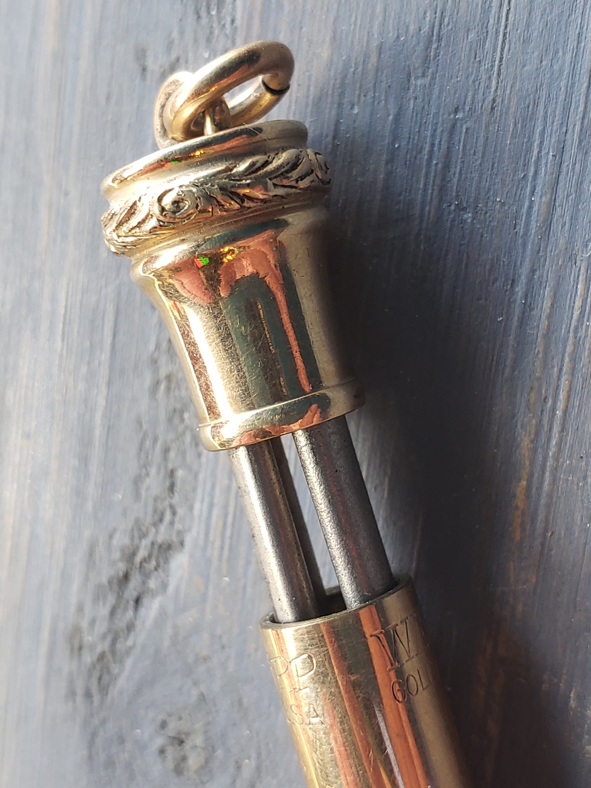Experience timeless elegance with the WAHL Eversharp gold filled mechanical pencil. Crafted for precision and style, this pencil combines durable gold-filled construction with smooth mechanical functionality, making it perfect for professionals and collectors alike. Its classic design ensures a comfortable grip and reliable performance, elevating your writing experience every time. Add a touch of sophistication to your desk with this exquisite writing instrument. It has lead inside and actually writes.