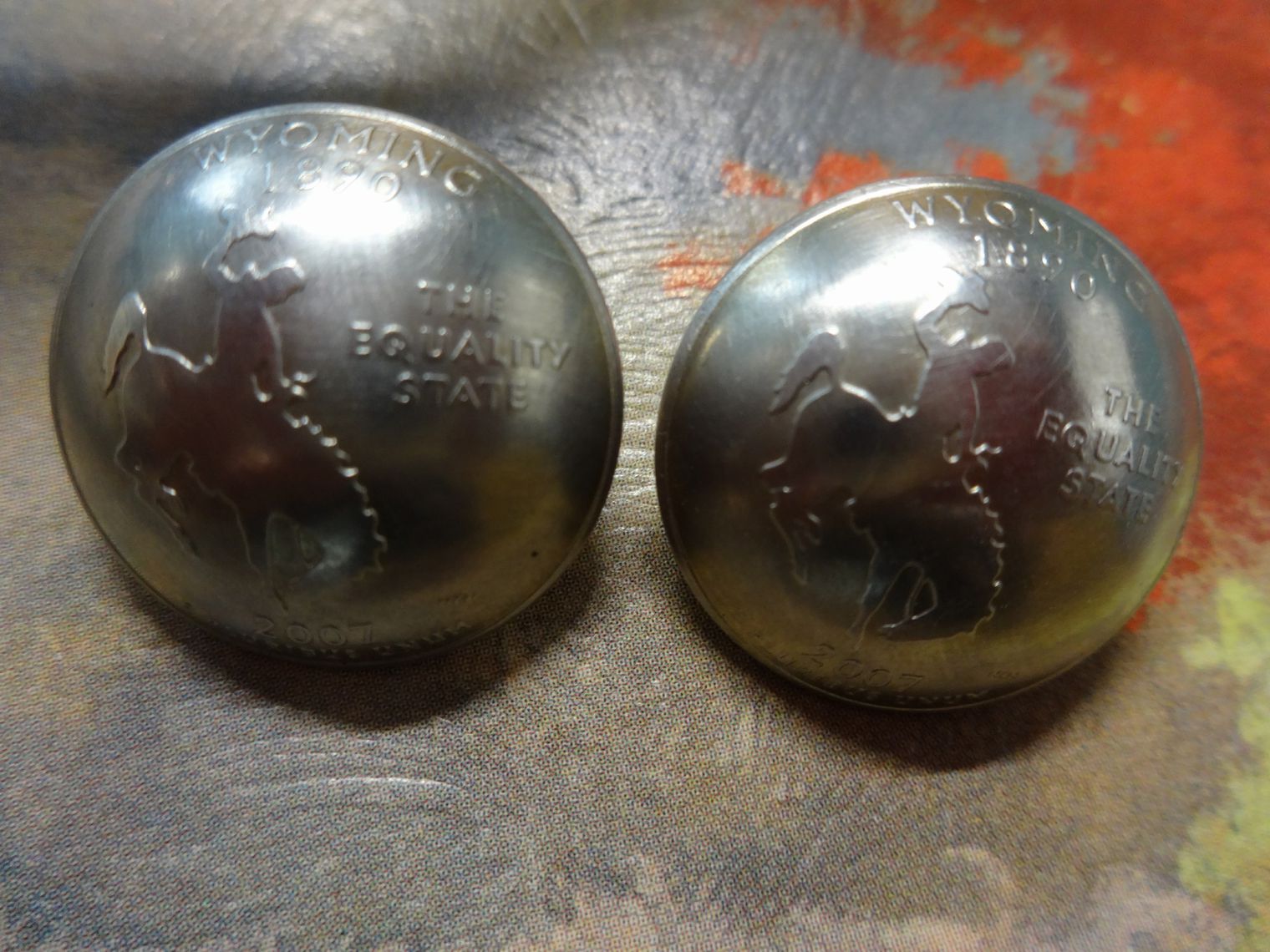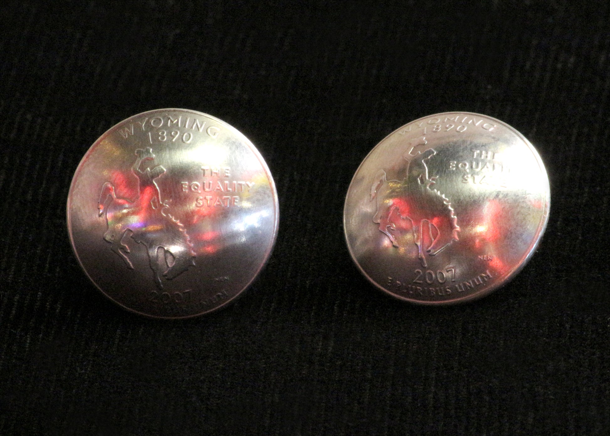 Wyoming Quarter Earrings. These are Round post earrings made from 2007 Wyoming Quarters with the iconic bucking horse. Made in Wyoming!