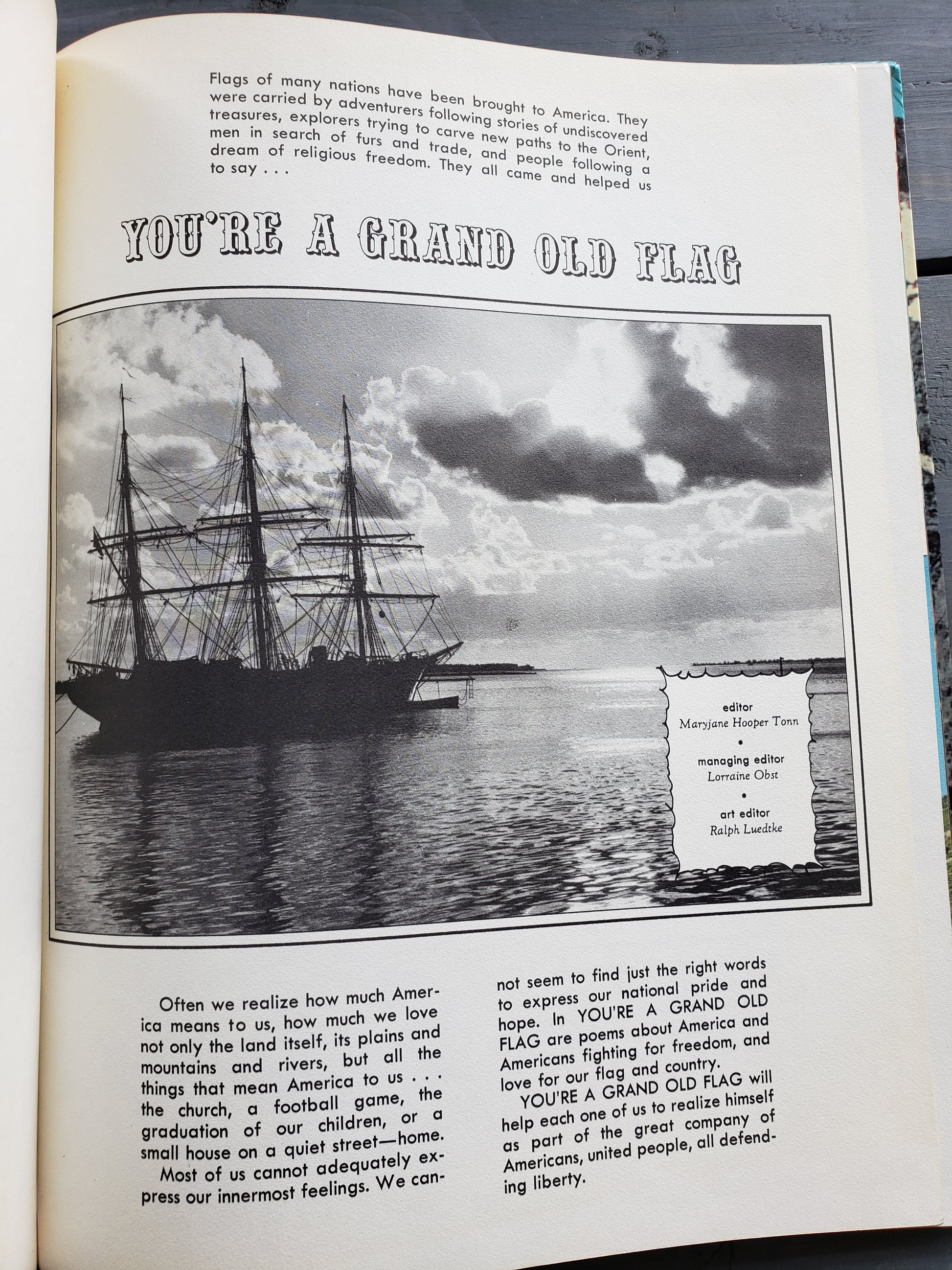 Discover the rich history of American flags with "You're A Grand Old Flag"! This captivating book takes you on a journey through time, showcasing the evolution of our nation's flags. With stunning visuals and detailed information, learn about the powerful symbolism and significance behind each flag. Let your patriotism soar! Fair vintage condition.